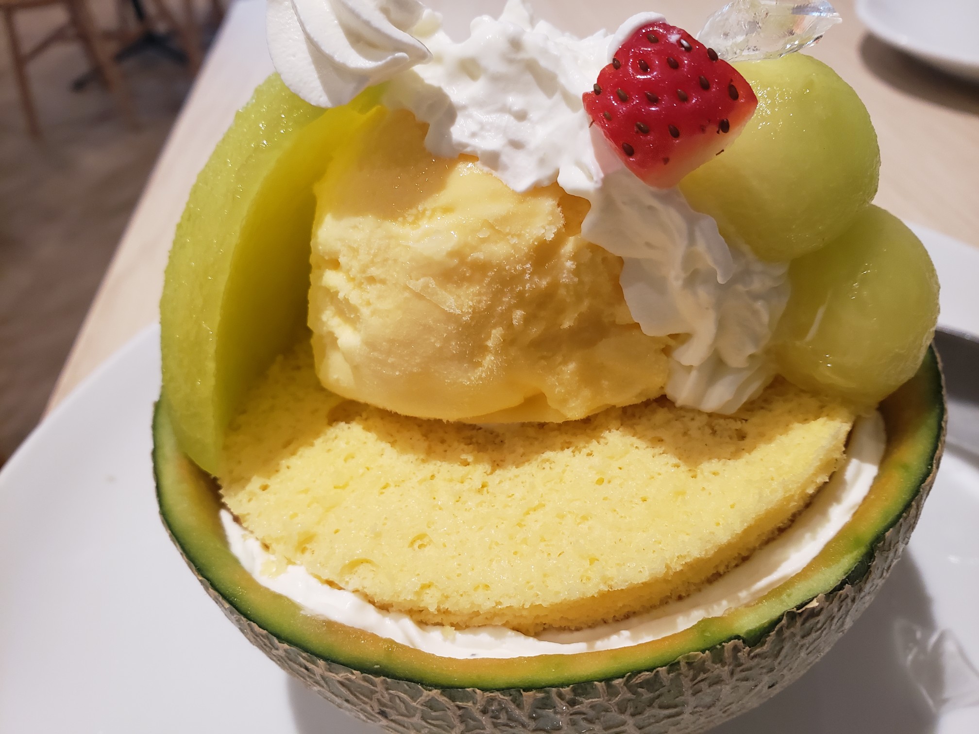 背中にはきれいにくり抜いたメロンが鎮座する。