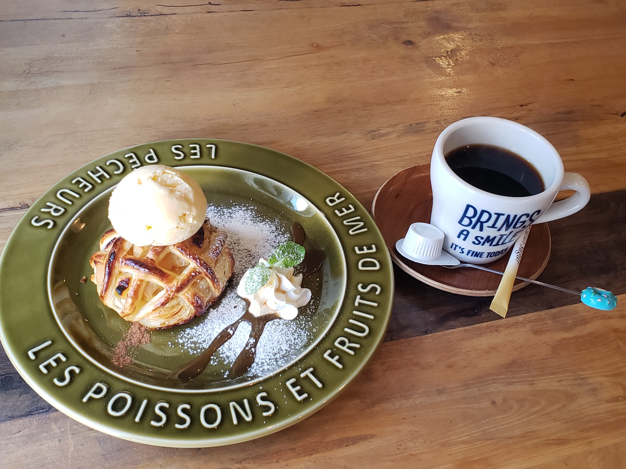 配膳タイム!今回のスイーツはアップルパイをチョイス。