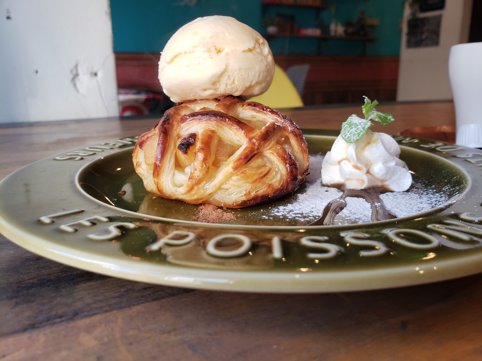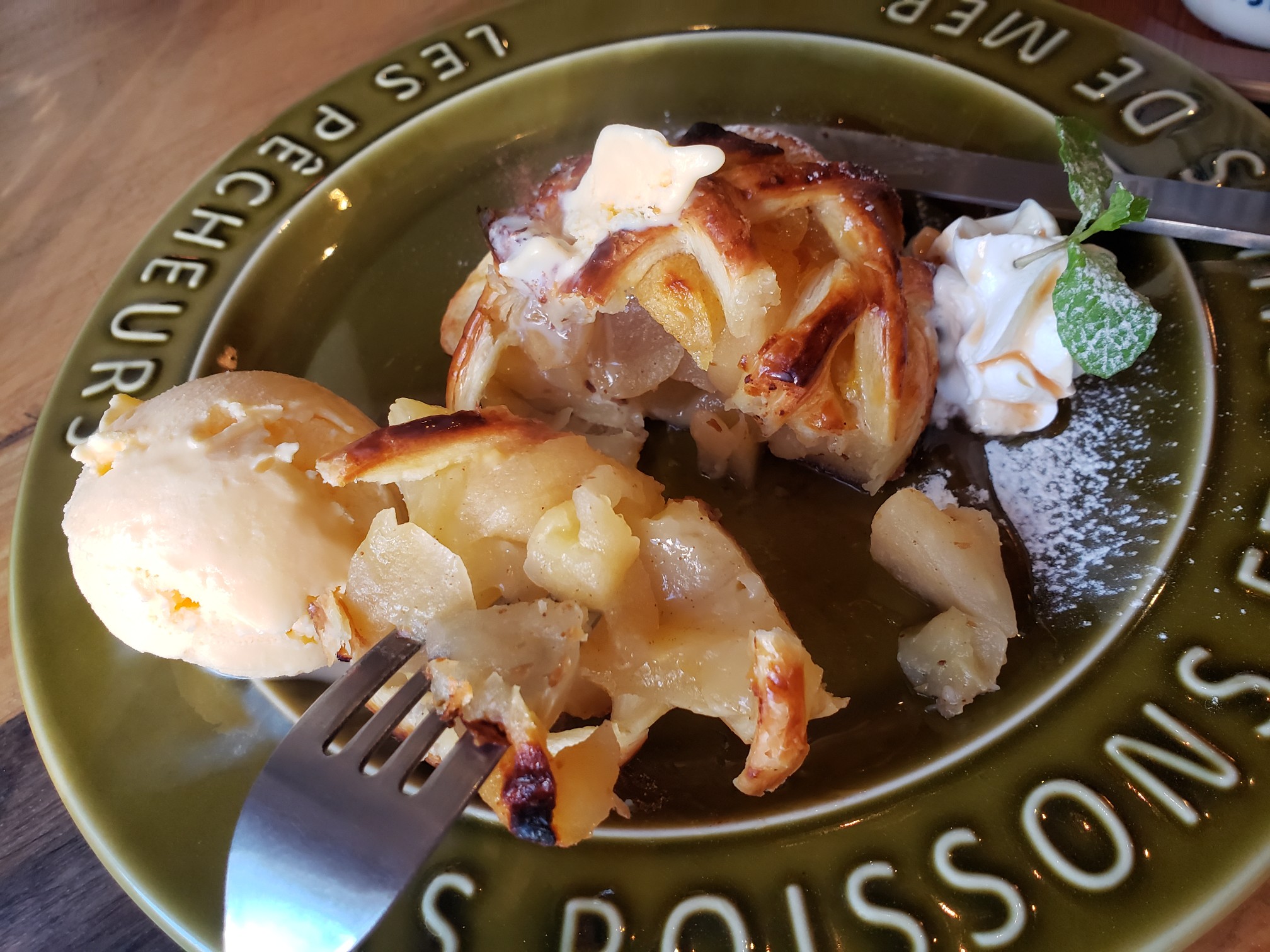 まん丸のアップルパイは珍しい形状。アイスクリームも上手に乗せてある。