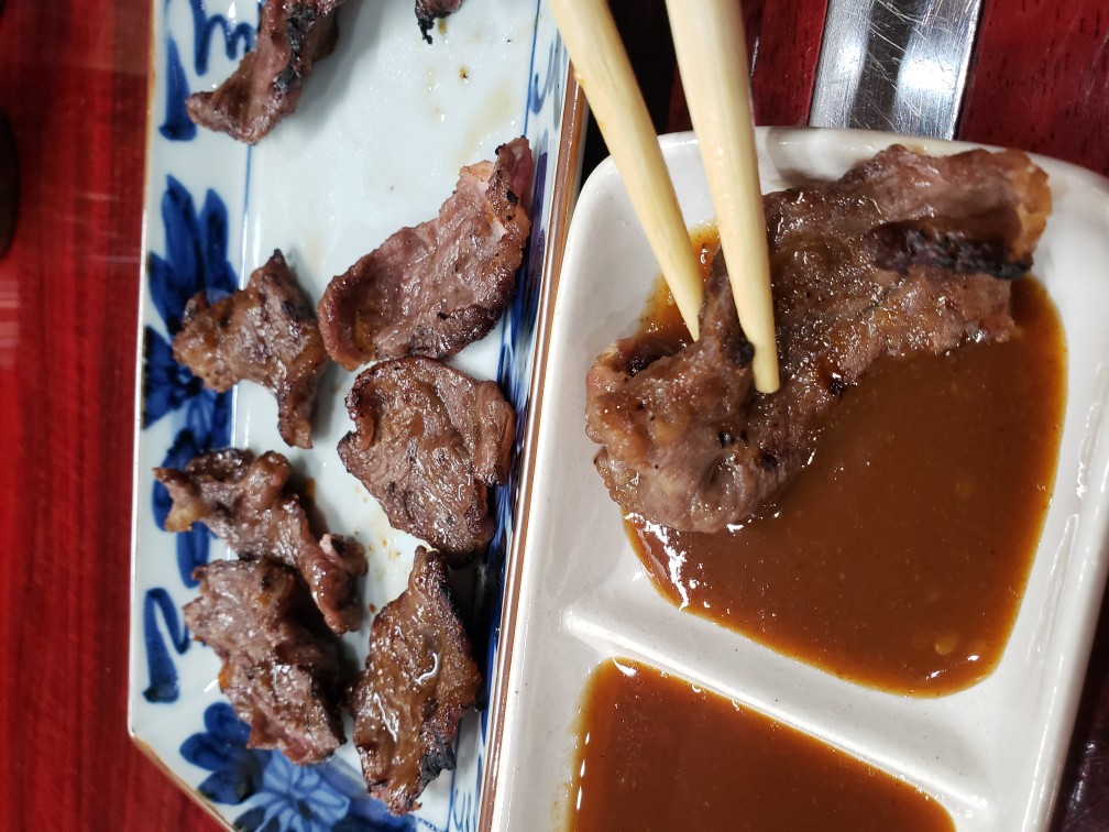 焼肉が焼き上がる間、バナナマンのせっかくグルメを楽しむ。