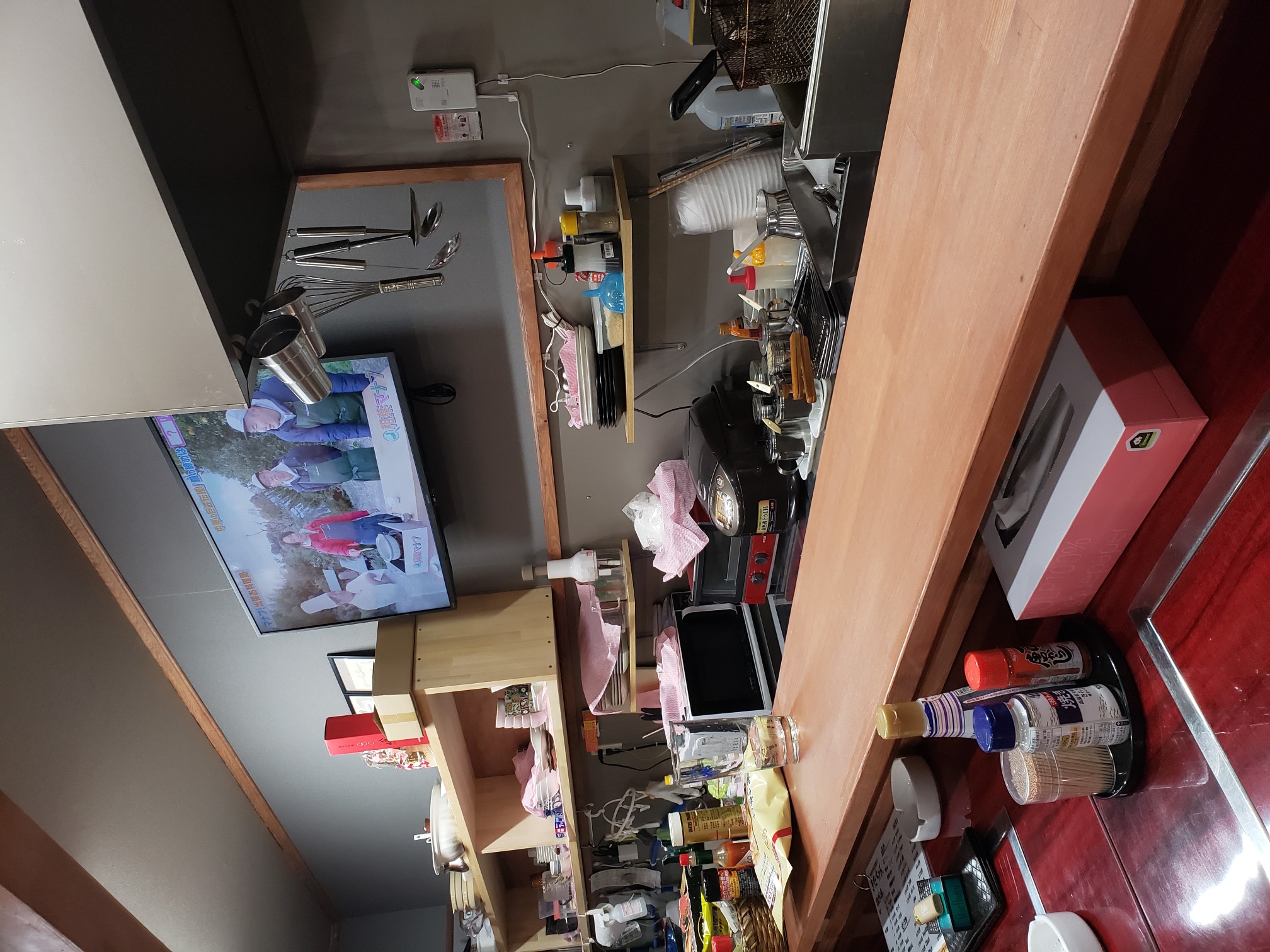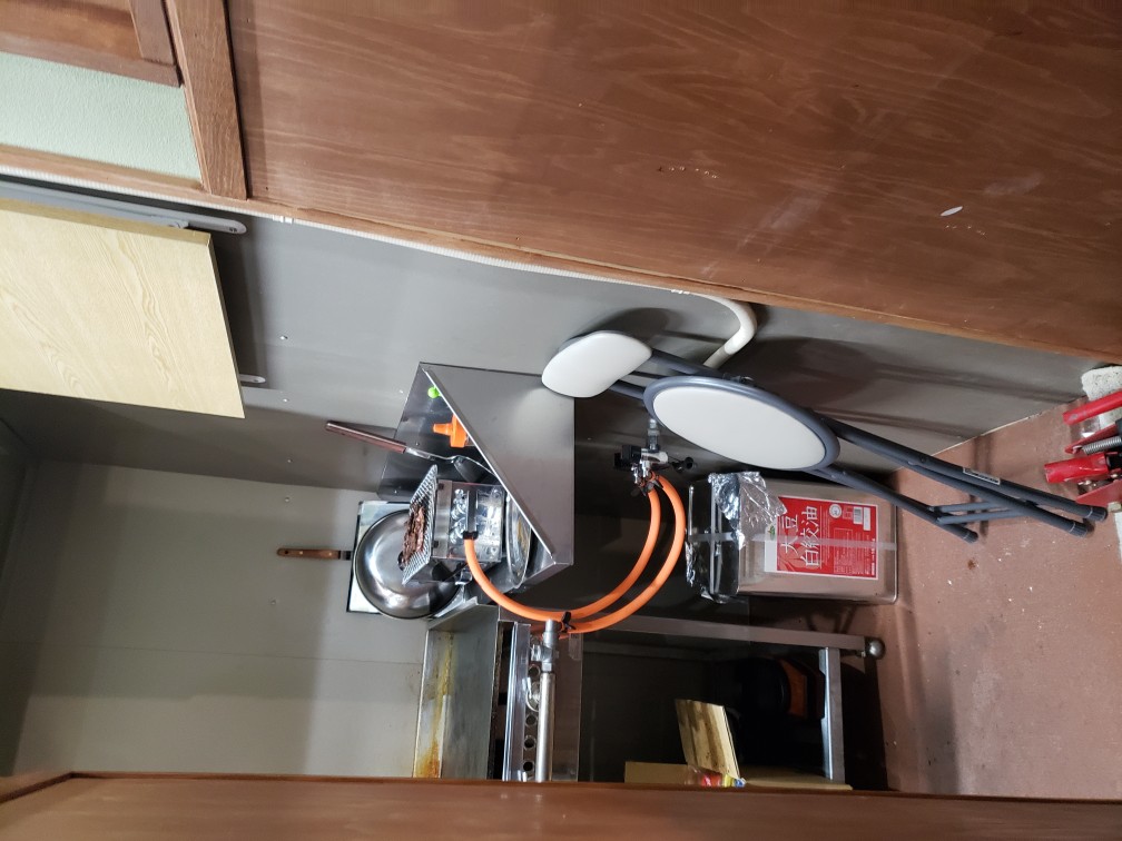 厨房の右端にある鉄板。お好み焼きはここで焼かれるのだろう。