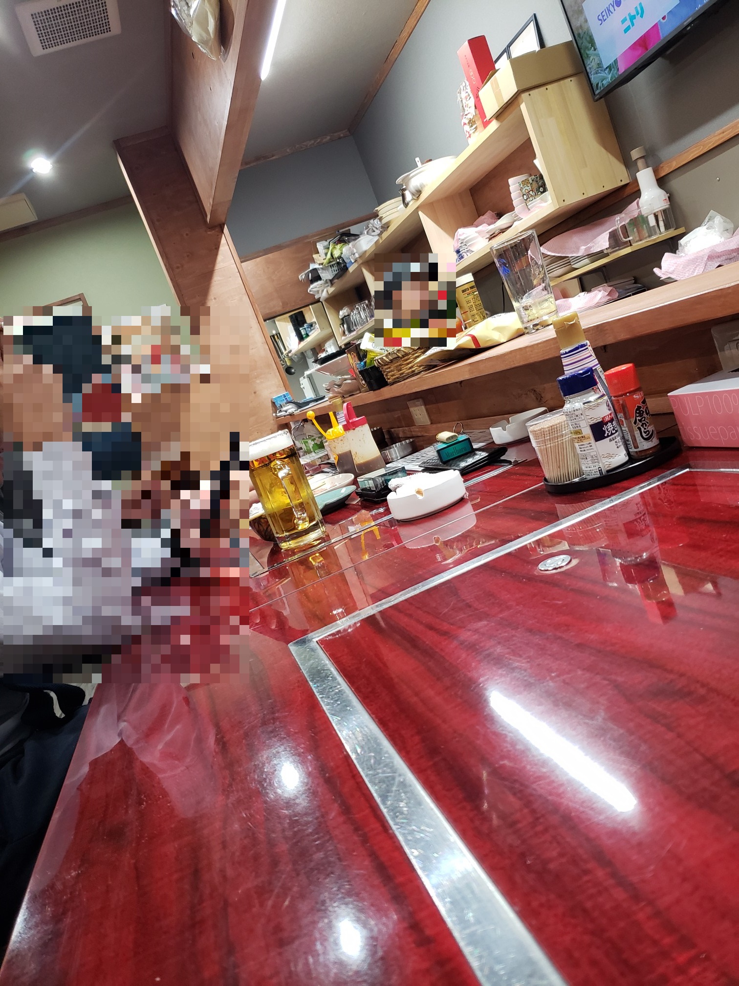 そして、今回はカウンター席の一番入口側に陣張って、すぐに生ビールをオーダー。