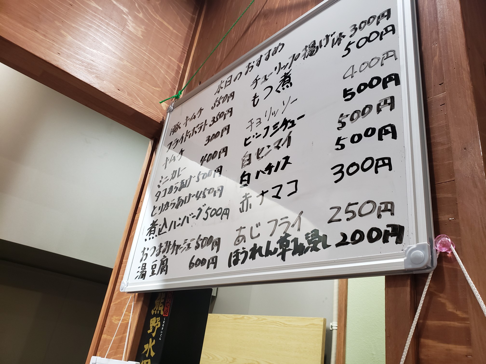 ホワイトボードメニュー。ここのメニューはレパートリーが広いな。