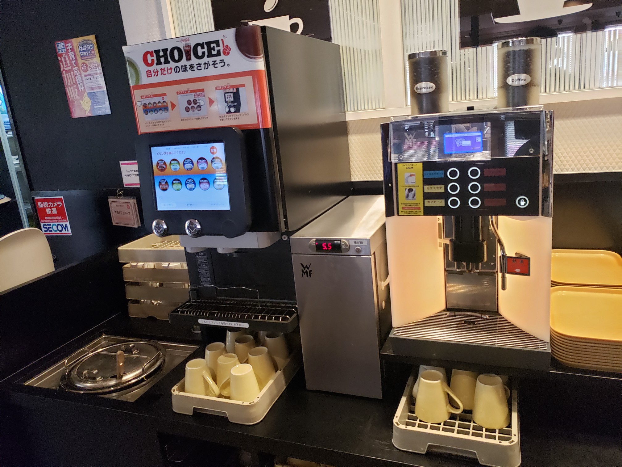 オーダーを済ませたらすぐにドリンクバーへ。ホットコーヒーは必需品。