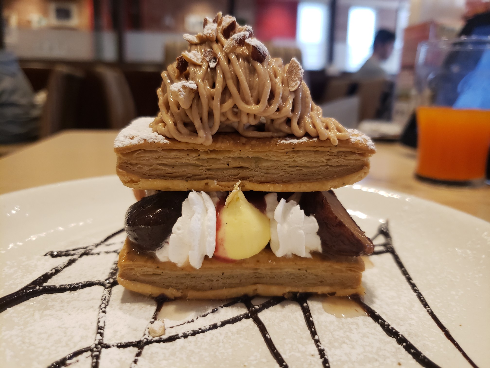 モンブランとミルフィーユ的なもののコンビネーション、うん、甘い!うんまい!