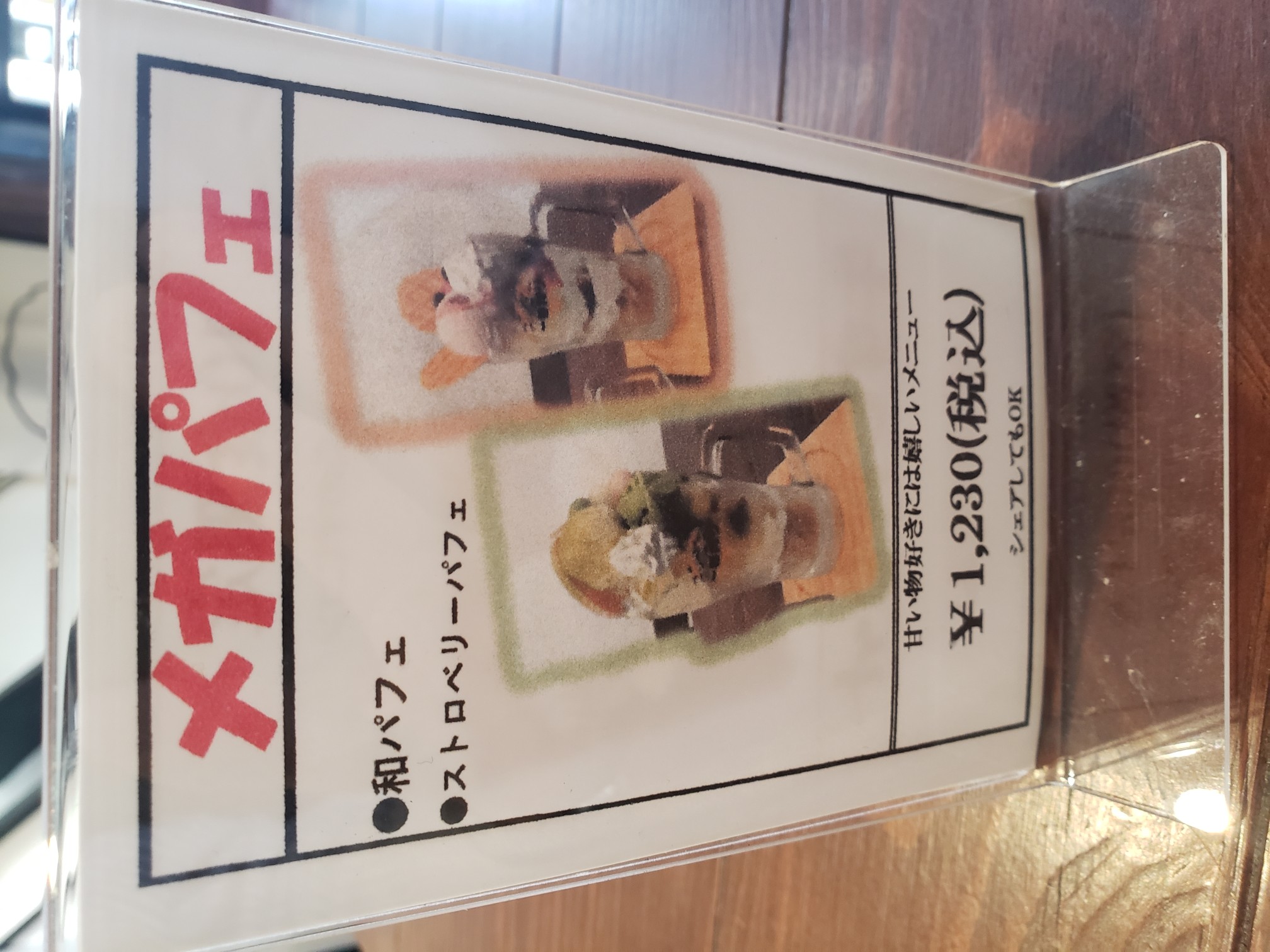 デザート系も結構揃っていますよ。このメガパフェは酔っぱらったら注文してしまいそう。