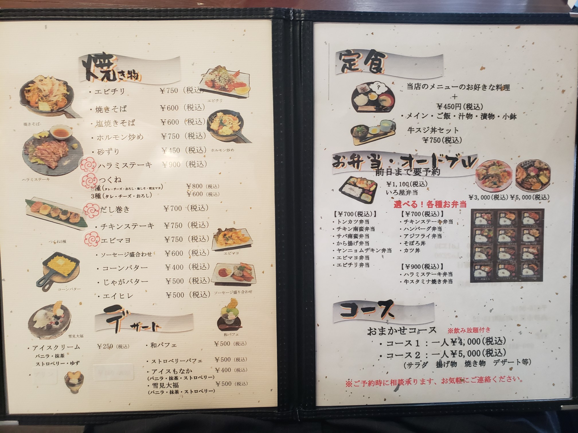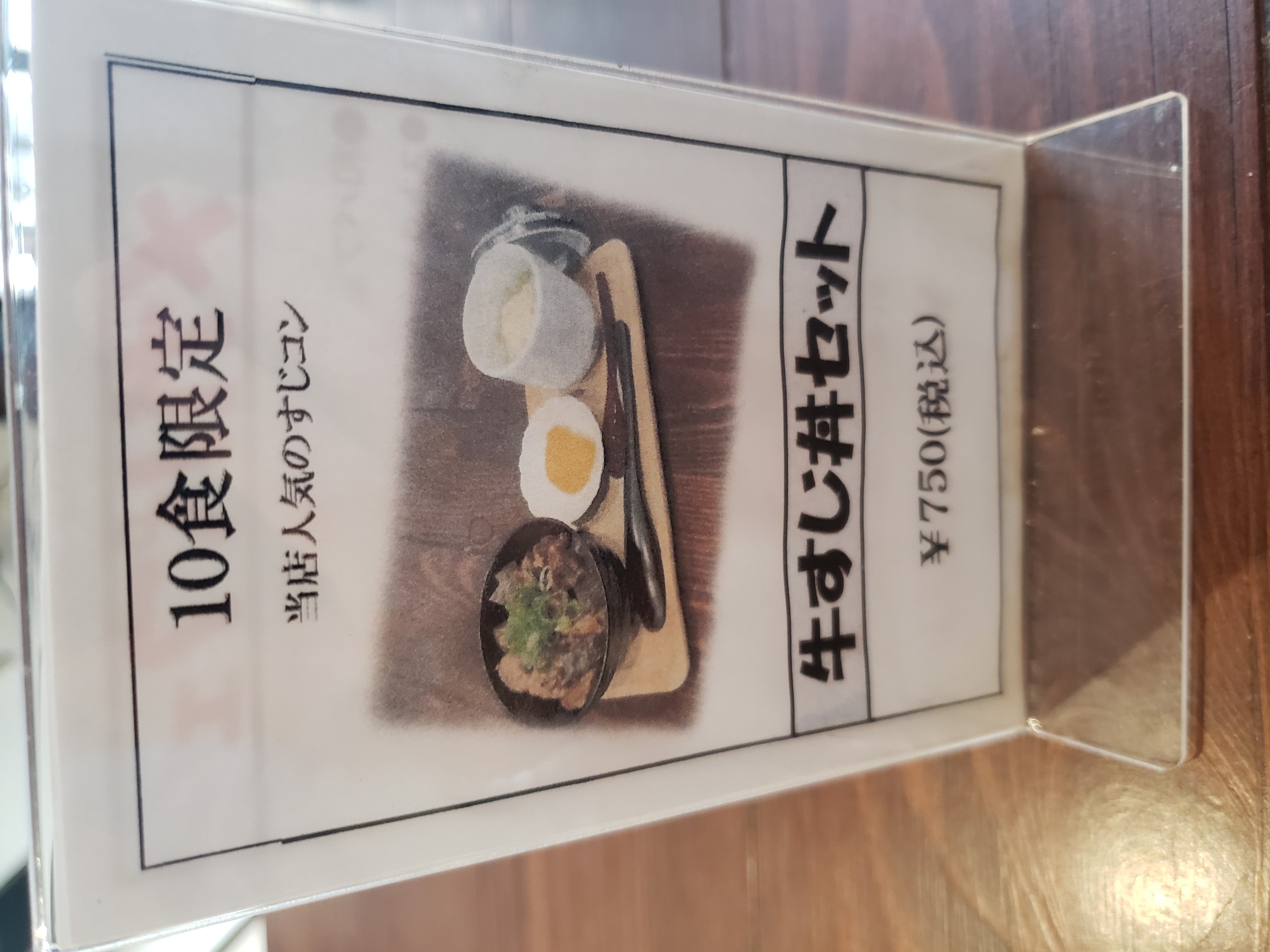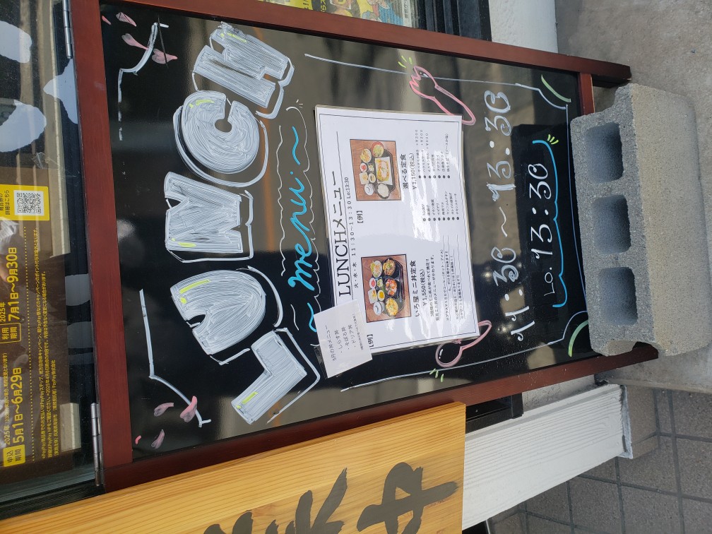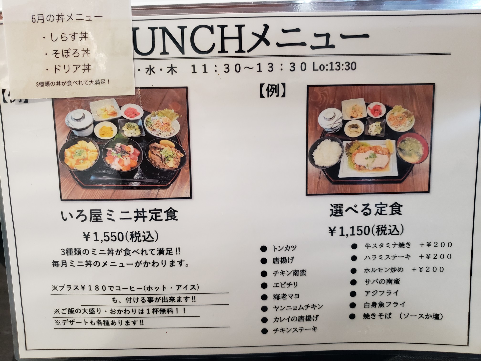 メニュー物色。左が同店名物ランチで、3種のミニ丼が付いたすばらしい定食。右はメインディッシュを15種類から選べる定食。どちらもナイスですねぇ。