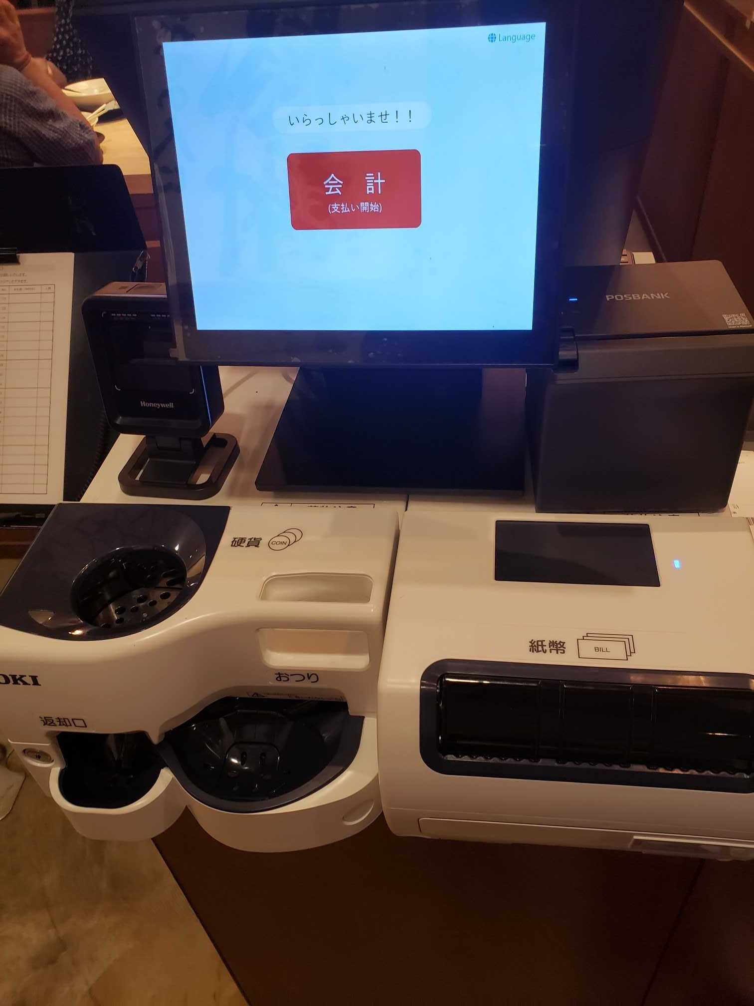 お会計もセルフ。筆者が清算しようとしたら画面フリーズ。