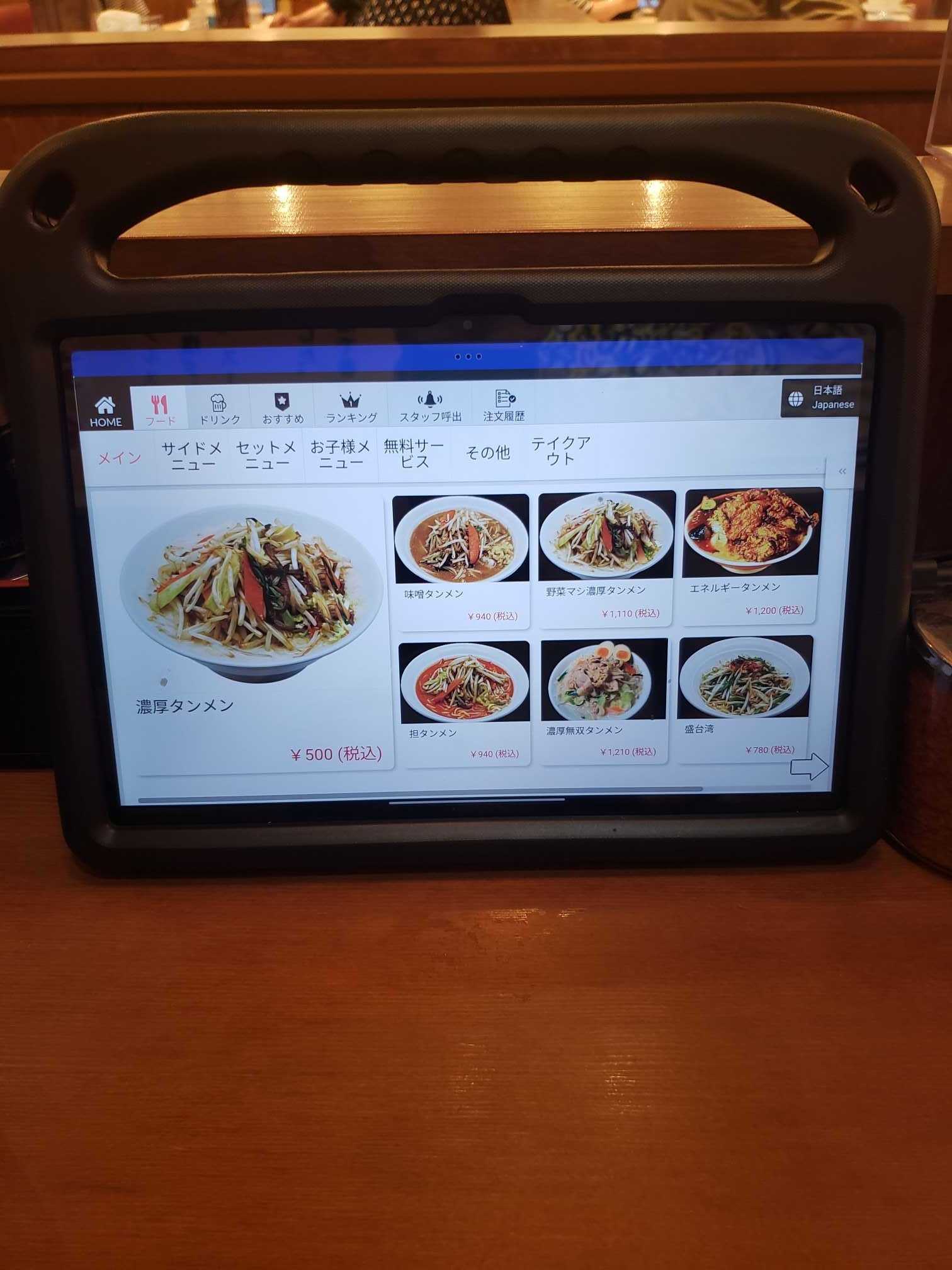 引越して来る前のお店は、地券売機で食券を買うシステムでしたが、今回は座席からタッチパネルでオーダー。券売機が苦手な筆者にとってはうれしいサービス。