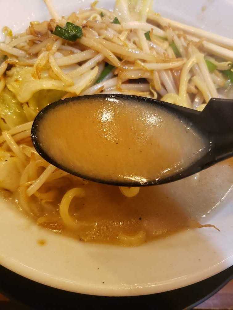 豚骨みたいだが、そんなにギトギトはしていないスープ。ちょっと塩味が強い。