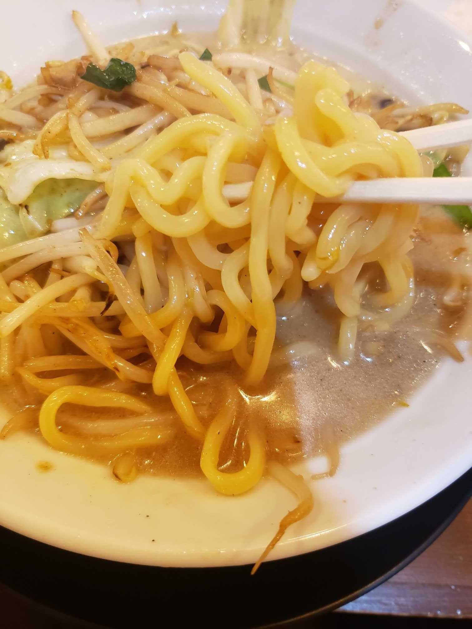麺は太麺か細麺が選べる。今回は太麺で。コシがあって、うんまい!