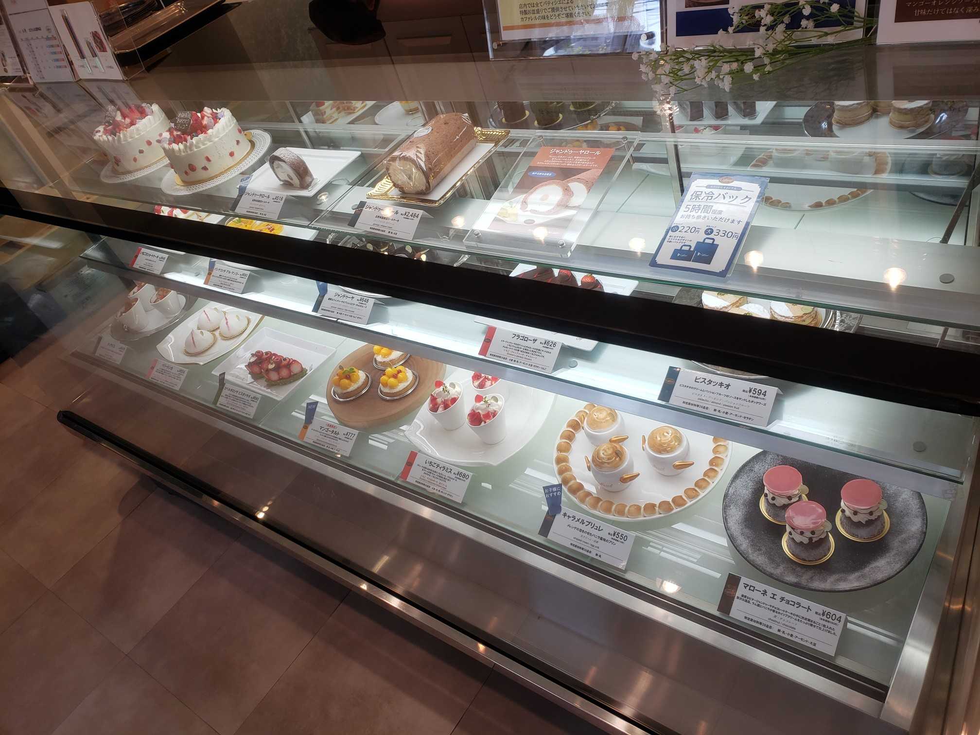 そんなに種類は多くないが、創作的なケーキが並ぶ。