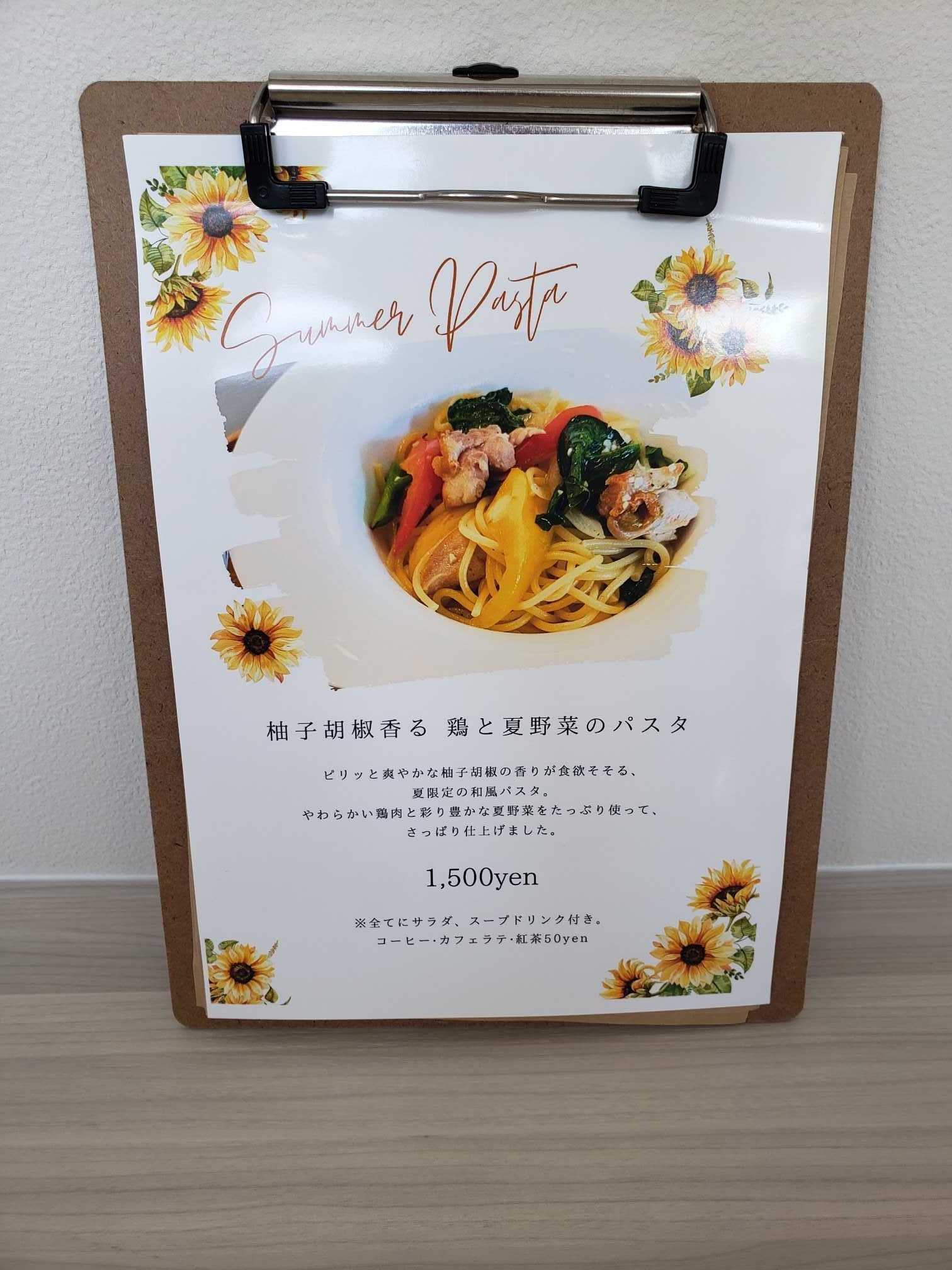 メニュー物色。基本的にパスタがメインのお店。季節物のパスタは魅力的。