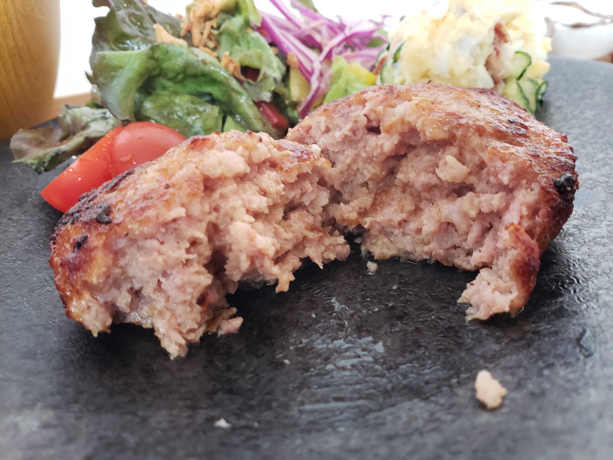 表面をしっかり焼いて香ばしさを演出したハンバーグ。