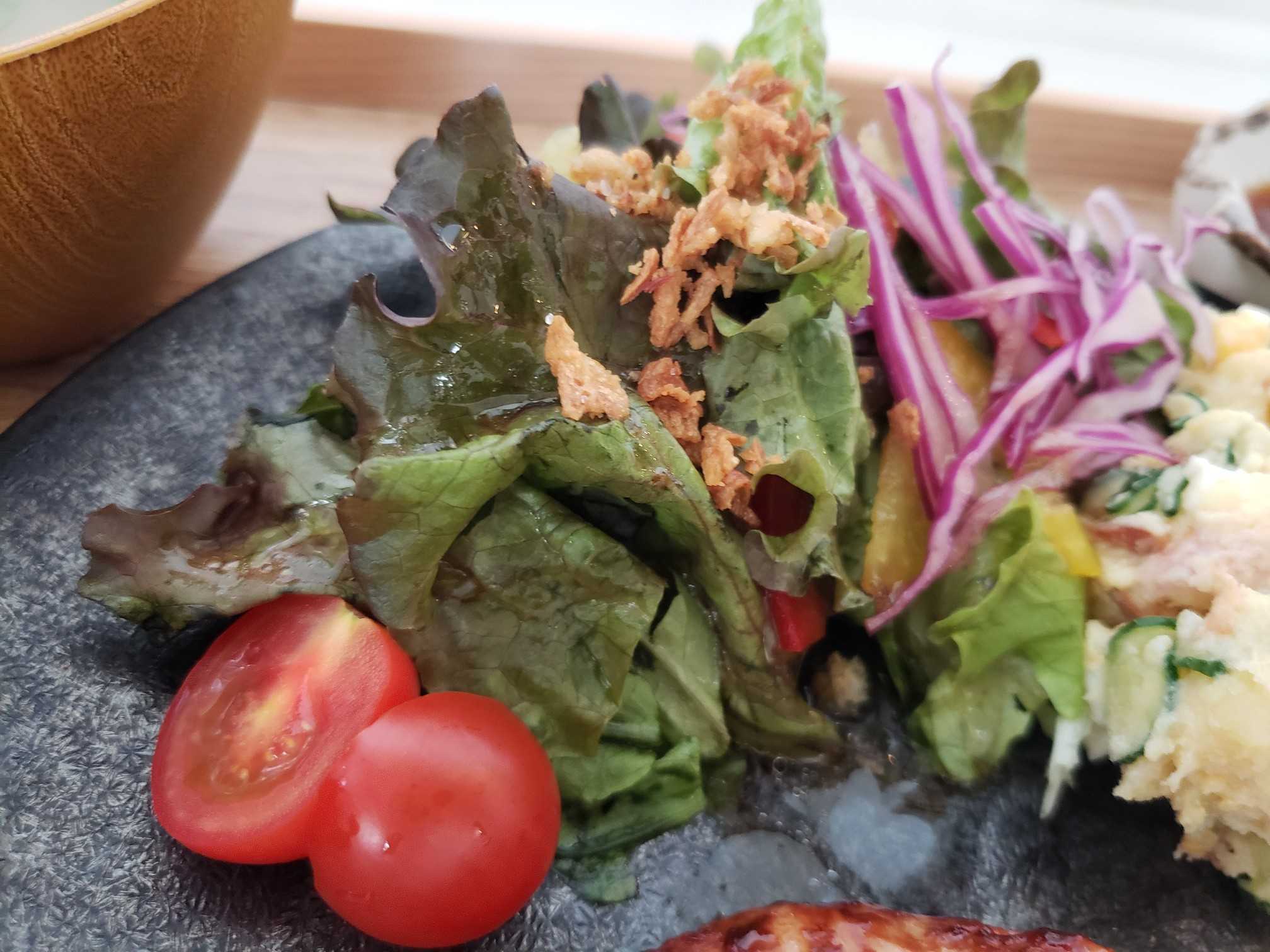 サラダもたっぷり。フライドオニオンがいいアクセントになってます、うんまい!