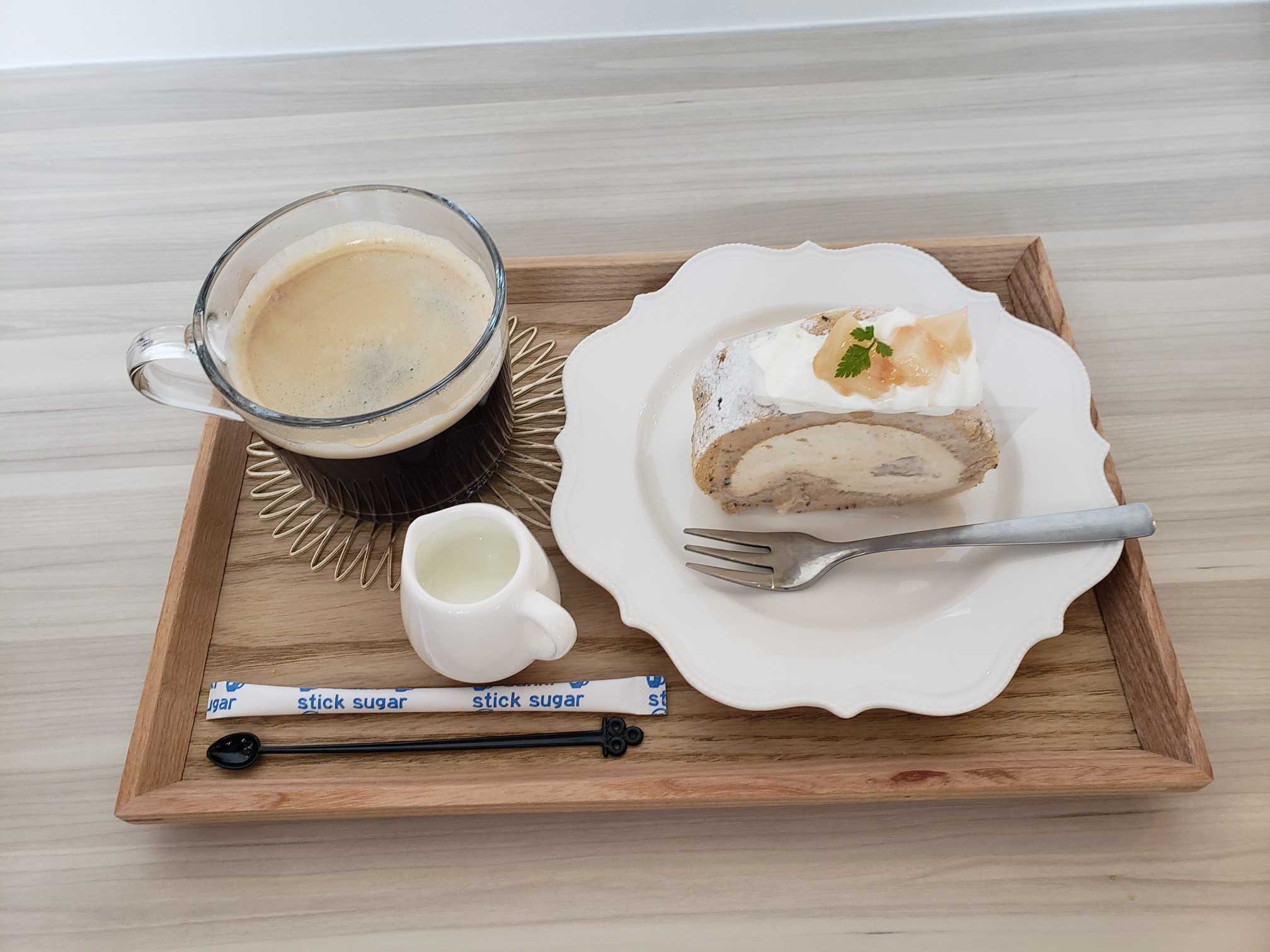 コーヒーは元々セットで付いて来る。ケーキはロールケーキをチョイス。