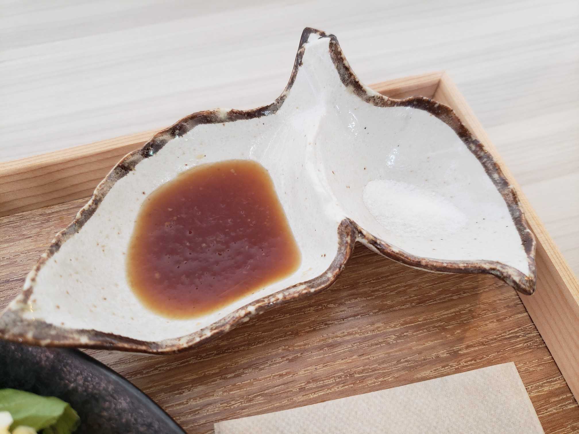タレは醤油和風ソースか塩でいただく。意外と塩が、うんまい!