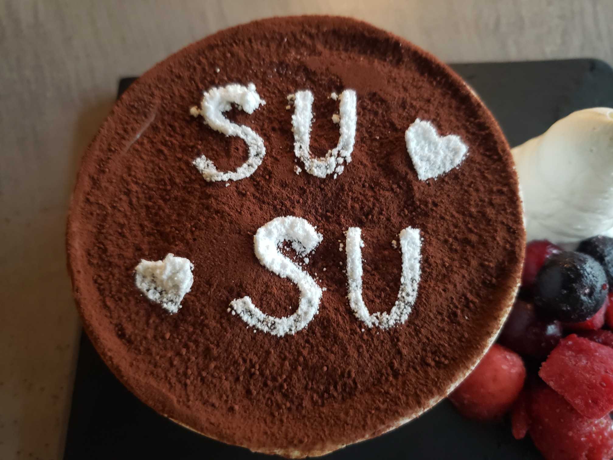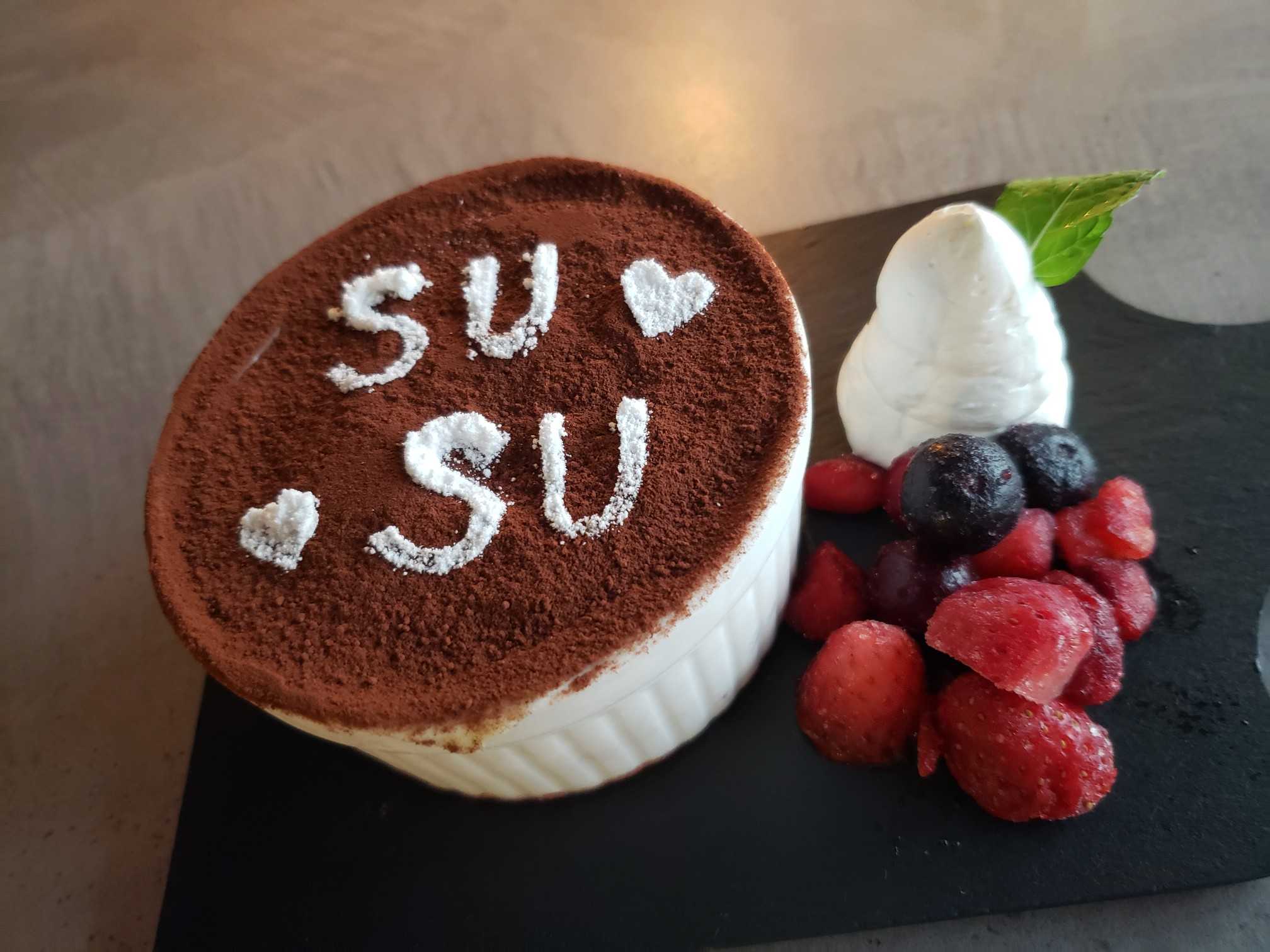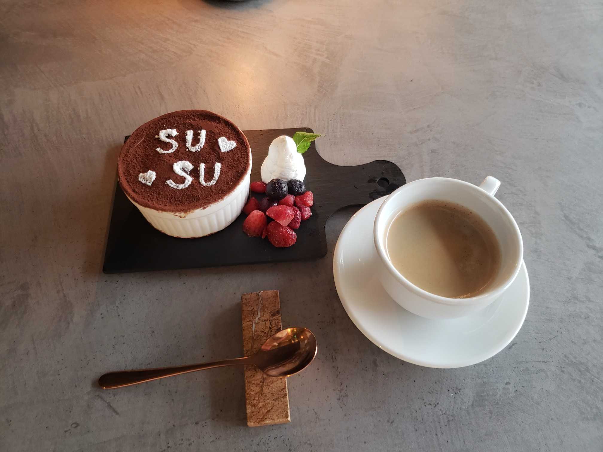 配膳タイム!ええ感じのティラミスやな。うまそー!
