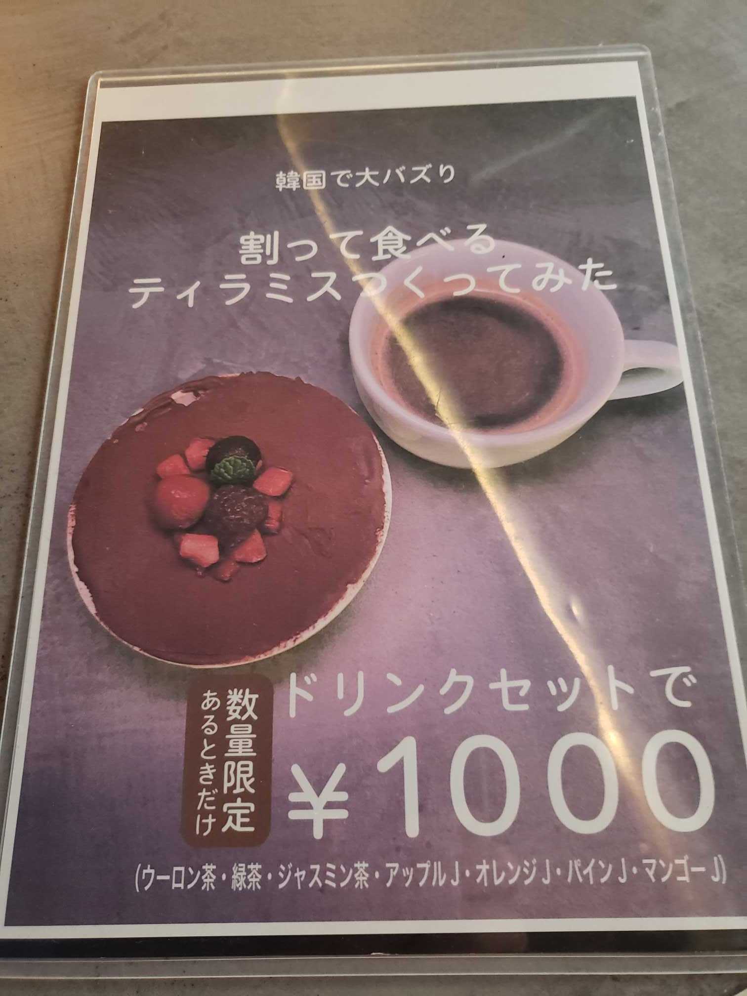 そして、今回はこのティラミスのドリンクセットをオーダー。ドリンクはもちろんホットコーヒー。