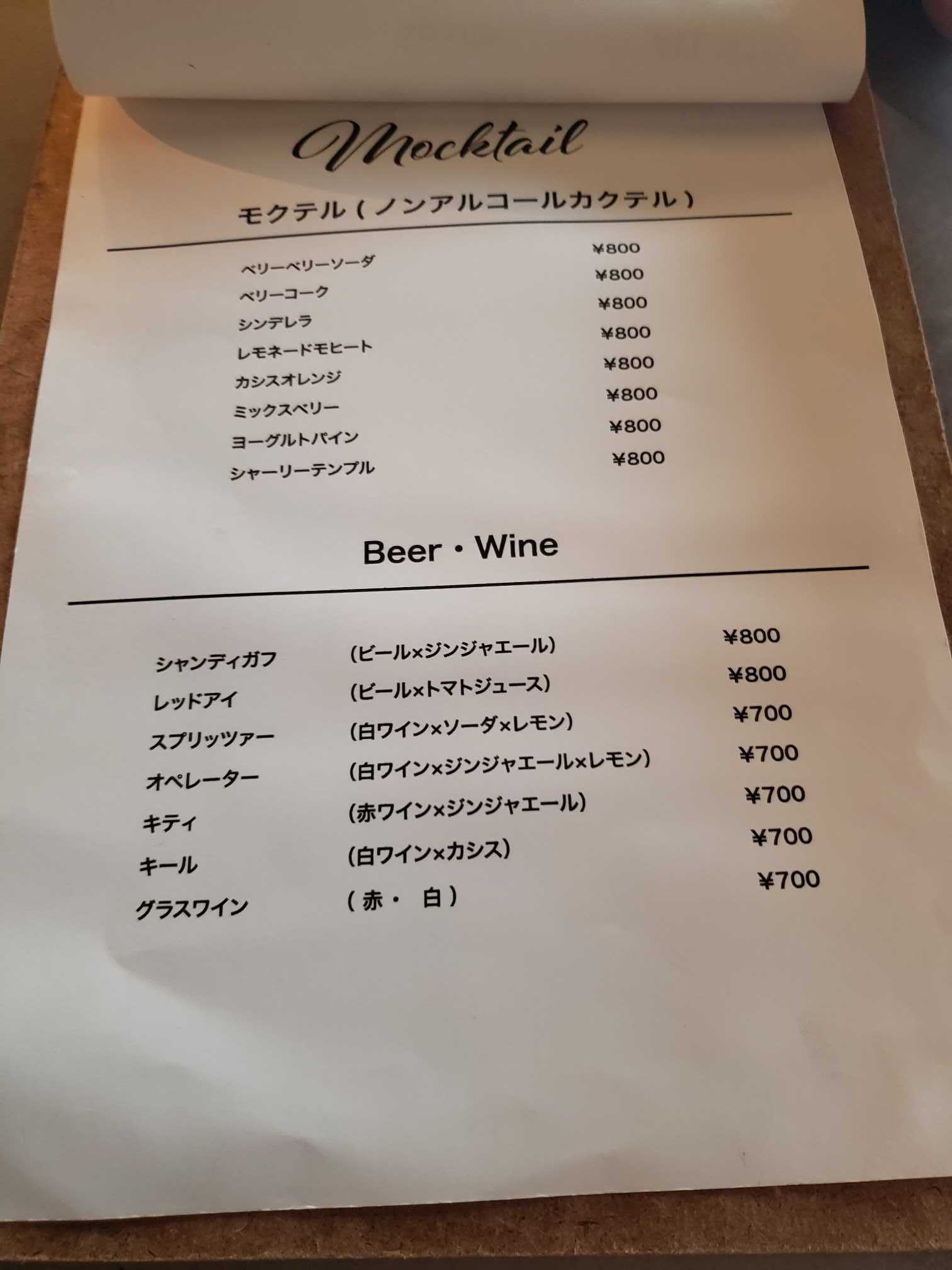 モクテルやワインカクテルなどオシャレな飲み物もあります。