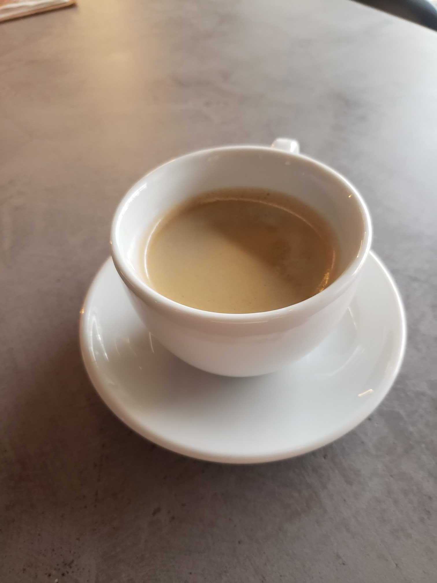 ホットコーヒーはやや渋め。スイーツにはこれくらいがちょうど良い、うんまい!
