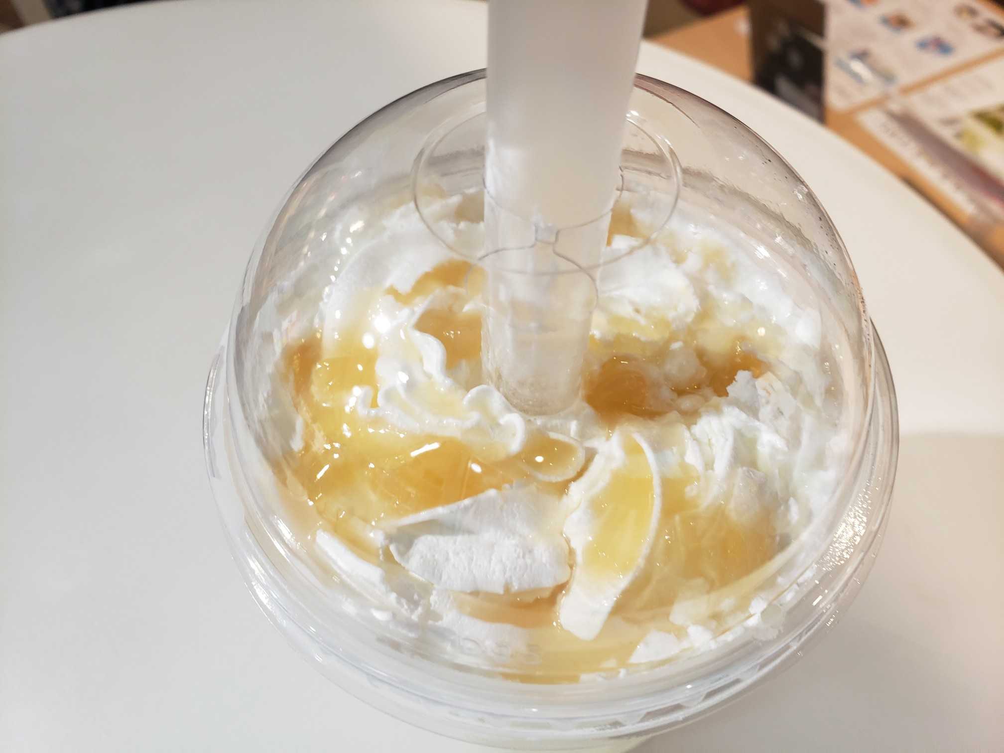 中層にはアイス、上部には生クリームとピーチソース。何てテンションが上がるスイーツや!うんまい!!