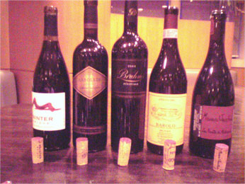 やっと書けたー(笑)。土曜日は1129さんのところでプチワイン会でしたー。メンバーはボクと彼女と、セリカさん、セリカさんの女性お友達で計9人。 持込ませていただいたワインは6本。(白は写ってません)まことに勝手ながら、5★で評価させていただきます。ちなみにここの★評価は、今回のワイン会の中の点数とさせていただきます。通常の評価とは関連しておりません。シャルドネ・ヴァン・ド・ペイ・ドック〔2003〕ドメーヌ・ド・バランドン★★☆まず一本目の白です。スッキリです。細かい感想はなし。ペインターブリッジ・ジンファンデル 2002★★★案外ウケが良かった。インクやセメダインなどの甘い化学薬品と青草の香り。人工的な味でしたー。ビオとか飲んでる人はダメですねーこれは。値段を考えたら、良しとしましょう。アルボレダ カベルネ・ソーヴィニヨン [2001] カリテラ ★★カベルネらしぃ味でした。ボトル差でしょうか?それ程良くなかったです。セリカさんは前と違うと言ってました。ブラハム ピノタージュ [2003]Brahms Pinotage★★★☆これもウケが良かった。南アらしいですが、それ程キツくはなかったです。スパイシーで辛口。ハーブの味です。うん、美味しい。ボクの隣に座っていたメリーさんは、ベストにこれとマッサ・ヴェッキアをあげてました。ホント?マリオ・マレンゴバローロ・ブルナーテ [2000] 赤★★★★どーーん、と来ることを予想していたのですが、とてもエレガントでした。良い意味でネッピオーロらしくなく感じました。う・うまい(笑)ルカさんの前情報ですと、色は茶色とのことでしたが、このときは真赤。このボトルは熟成まだかも?ラ・フォンテ・ディ・ピエトラルサ[2000] マッサ・ヴェッキア★★★★★はい。この日のベストです。1129さん的ですと、ムンムンといったところでしょうか(笑)頬肉のパワーにはこちらが良かったみたいです。あ~美味しかった。途中パスタで1129さんに白を2本出していただきました~。この2本とも、女性には大人気でした!テルランシャルドネ [2004] 白★★★ぶどうのあま~い香り、ドイツの様。しかし味は辛口。ロンコ・デル・モナステロ〔1999〕バルテル・フィリップティ★★★★果実味十分。乳酸っぽくも感じました。ボクこれすき!樽がきいていると思ったのですが、ステンレスなのですねこれ。料理はセリカさんのページに画像付きで紹介があります。全て美味しかったと簡単に終わらせたくないくらい美味しかったですよ!あー、でも全部美味しかったなー。全部もう一度食べたい(笑)特にあげるとすれば・・・なんだろう?全部美味しかったので選べません(笑)ズコットももう一度食べたいですねー。それにしても、あのお値段でホントに豪華!ありえません!1129さん、妹さん、おとうさん、本当にありがとうございました~。そしてご迷惑をおかけしました~(笑)セリカさんのお仲間のおねいさま達は、とてもお話好きで面白かったです。勢いとパワーが凄かったです。ちょっと初めは怖かったですが(笑)何だかわかりませんが、おねいさま達にボクの言うことが結構ウケてたな~。あ、最後の一回はスベッてた(笑)あっそうそう、翌日のバローロ、めちゃうまでした♪ムンムンというよりも、モンモンといった感じ(笑)余韻も十分。美味しかった~。