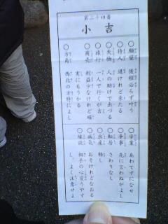 新年恒例の初詣から帰宅しました!!ここ数年初詣にはこの2箇所のいづれかに参拝している・・・一つは”神田明神”でもう一つは”湯島天神”神田明神は商売繁盛!!湯島天神は学業成就!!去年は湯島天神に行った。おかげで資格取得出来た。今年はというと・・・やっぱり湯島天神に行ってきました(^^ゞ何故かと言うと今年もさらに上級の資格取得を本業のほうで要求されている本心は神田明神に行き商売繁盛を祈願してきたかったのだが・・・まぁ、商売繁盛は自分の努力である程度できるかもしれないが学業成就はもはやある程度神仏の力に頼る必要があるからです・・・参拝にはやはり混雑しており小一時間ほどかかった・・・その後お約束のおみくじ!!結果は・・・小吉でした・・・う~ん微妙・・・おみくじでは学業は”あわてずになせ”商売は”利益少なれど確実にもうかる”とのことでした・・・いづれにしてもコツコツとすることがよいのだろうというお告げらしい・・・自分にあっていると思い納得・・・今年もあせらずマイペースでやることがよいのだろう・・・今日は天気もよく参拝日和でした明日は物件の募集図面を作ろうかと思う・・・一日も早い満室経営を目指して!! Shindy3110