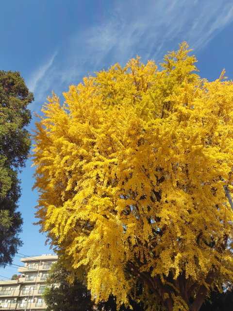 11月14日(金)東北大学片平キャンパス正門の南側に立つ大きなイチョウの木。仙台市の保存樹木に指定されています。樹齢約200年ということですが、立て札が立てられたのは昭和50年(1975年)。そこから50年経っているので、樹齢は約250年ということになりますね。ハラハラと葉が落ちてはいますが、まだまだ枝にどっさりと。ちょうど黄金色に色づいて、朝日に照らされてきれいでしたので、スマホでパチリと。by SHARP AQUOS Sense9これからバサバサと葉が落ちていくのでしょうね。