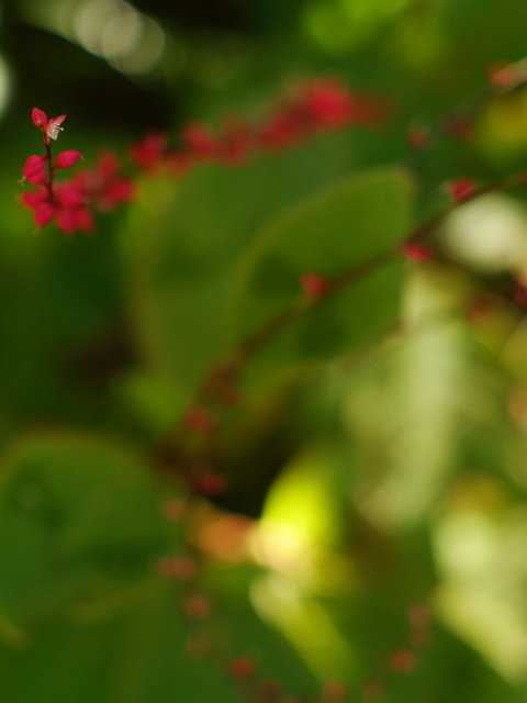 10月10日(金)10月10日は、もと「体育の日」。1964年の東京オリンピック開会式の日です。統計的に、ほぼ絶対晴れる(晴の確率が高い)日ということで開会式の日程に決まったほどのすごい日ですが、はたして今日の天気は・・・やっぱり晴れ。すごい。日も照っていて、ちょっと前ならこの天気で外を歩き回るのは避けたくなるところですが・・・ここ最近はずいぶん涼しくなり、湿度も下がってカラッとさわやかになってきたので、汗だくにならずにウォーキングできます。朝の出勤前に、いつもの南六軒丁通りから片平丁通りを行くコースではなく、久しぶりに土樋通りから米ヶ袋鹿子清水通りをたどって、縛り地蔵から入る「米ヶ袋遊歩道」を歩くことに。「広瀬川ホームページ」の紹介ページ米ヶ袋鹿子清水通りのゆるやかな坂を下っていくと、突き当たりにあるのが「縛り地蔵」。中へ入り、お地蔵様の前で左手のほうへ。「米ヶ袋スポーツ公園」という看板。そのうしろに広場が広がっています。ここでは、今朝もゲートボールの準備が始まっていました。広瀬川沿いに西へ向かって歩きます。道の脇にコスモスの花が咲いています。日当たりの良い斜面に、草の間からたくさんの・・・何?イネ科の何か、あとで調べてみたらおそらく「チカラシバ」のようですが、この先歩いて行くとあちこちで見かけました。対岸の崖には「向山の湧水」。ススキの穂も風に揺れる秋の風景。春には赤やピンクの花が一斉に咲くハナモモ並木。振り返って、まぶしい朝日に愛宕山のシルエット。どんどん進んで、遊歩道の西端へ近づいてくると、前方に霊屋橋が見えてきます。天気も良く爽やか気分、適度な運動。良い朝です。さて、この遊歩道歩きの途中、ちょうど宮城県立工業高校(通称「県工」)の裏あたりに、お目当てのミズヒキエリアがありまして、ここを訪ねるのが第一目的でした。ミズヒキの花は朝のうちしか開いた姿を見ることができないので、昼休みではなく朝の出勤前に行くのがベスト。このエリアのミズヒキは、片平のものと違って花茎がまっすぐ伸びず、クネクネと曲がりくねっているのが多いです。長く伸びすぎているのが原因か、日当たりの問題なのか・・・わかりませんが、なかなか写真の被写体的に「イケてる」ものを探すのに一苦労です。それでもちょうどてっぺんにひとつだけ開いた花をつけていた具合の良いミズヒキを見つけました。by OLYMPUS STYLUS XZ-2そして遊歩道の終点間際、薄ピンク色のハナタデの中にまぎれて、三筋ほどの赤い点の列が。どちらもタデ科、まったく違和感なくなじんでいます。まるで色違いの同じ種のようです。ハナタデのほうはいくつか花も開いていました。予想外の収穫でした。