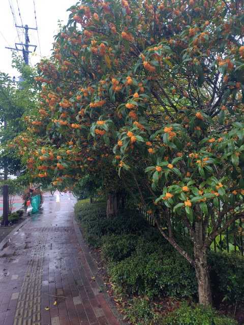 10月11日(土)今日は連休初日ですが、朝から雨の天気。15時時点でもたったの200歩ほどしか歩いていません。買い物ついでにその辺を散歩するか・・・地下鉄薬師堂駅近くでは、雨降りの天気でも強く香ってくるキンモクセイの香りに引き寄せられて・・・by SHARP AQUOS Sense9オレンジが雨に濡れて映えます。ニラの花はちょうど見頃の満開。とはいっても、こんな雨の日にわざわざ立ち止まって(このときは一旦通り過ぎたのですが、また引き返してきて撮影)しゃがんでじっくり観察、なんて酔狂な人はほかにいないでしょうね・・・地下鉄東西線、薬師堂駅北側のバスプールへ入ろうかという角に、イタドリが。雌花が咲き終わって、実をつけています。真ん中の果実を包む三つの萼(がく)からはステンドグラスのような翼が出て、晴れたときに日に透かして見るととてもきれいなのですが、今日のように雨に濡れた姿もなかなか美しい。最終的には大和町、中倉あたりを歩いて、トータル8600歩ほどになりました。