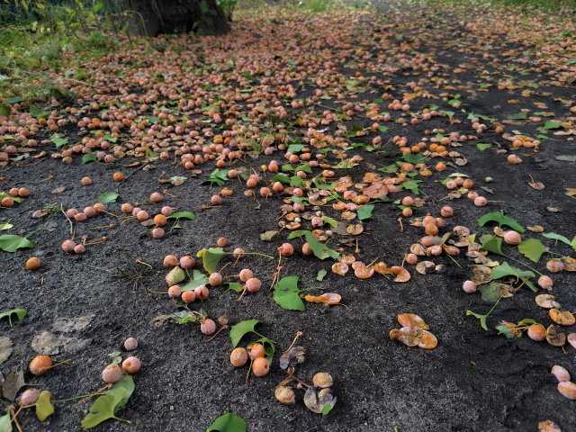 11月2日(日)今日は三連休中日の日曜日です。昨日の初日は車でドライブの一日だったので歩数が伸びませんでした。そんなわけで、今日はたくさん歩く一日にしようと、仙台市若林区荒町にある「荒町公園」へ行ってみました。この公園は、荒町商店街のバス通りからちょっと入ったところにあり、西の昌伝庵と東の仏眼寺(ぶつげんじ)に挟まれています。仏眼寺側のエリアには、ブランコや鉄棒など公園らしい遊具もあるちょっとした広場になっていますが、西側半分の昌伝庵前に抜けるほうのエリアは、公園というよりは散歩道といった感じです。ただ、両サイドにりっぱなイチョウの木があり、この時期にはたくさんの銀杏の実を落としますので、地面は銀杏の実で埋まります。今日は西の昌伝庵側から入ったので、この「銀杏の絨毯」は避けて通れません。by SHARP AQUOS Sense9まともに踏み潰してしまったら、悲しい事態になってしまいます。安全を確保しつつしゃがんでアップで撮影してみます。by OLYMPUS STYLUS XZ-2香りも鮮烈!なるべく踏んづけてしまわないように気をつけながらつま先立ちで反対側(仏眼寺側)へ通り抜けます。振り返ってホッと一息。by SHARP AQUOS Sense9この公園にはりっぱなムクゲの木もあり、今年7月23日の日記には少し情報を書いています。荒町市民センターのHPに、今年6月に開催されたイベントのお知らせが出ていました。「荒町で感じる四季の移ろい~スマホで撮ろう!私の荒町公園」そんなすてきなイベントがあったなんて!当日は、ソフトバンクの「スマホアドバイザー」なる方を講師に迎えて、スマホでの上手な写真の撮り方講座が開かれたもようです。スマホを使った写真撮影のスゴ技、ウラ技をおしえてもらえたのかも。気がつかなかった。残念です。