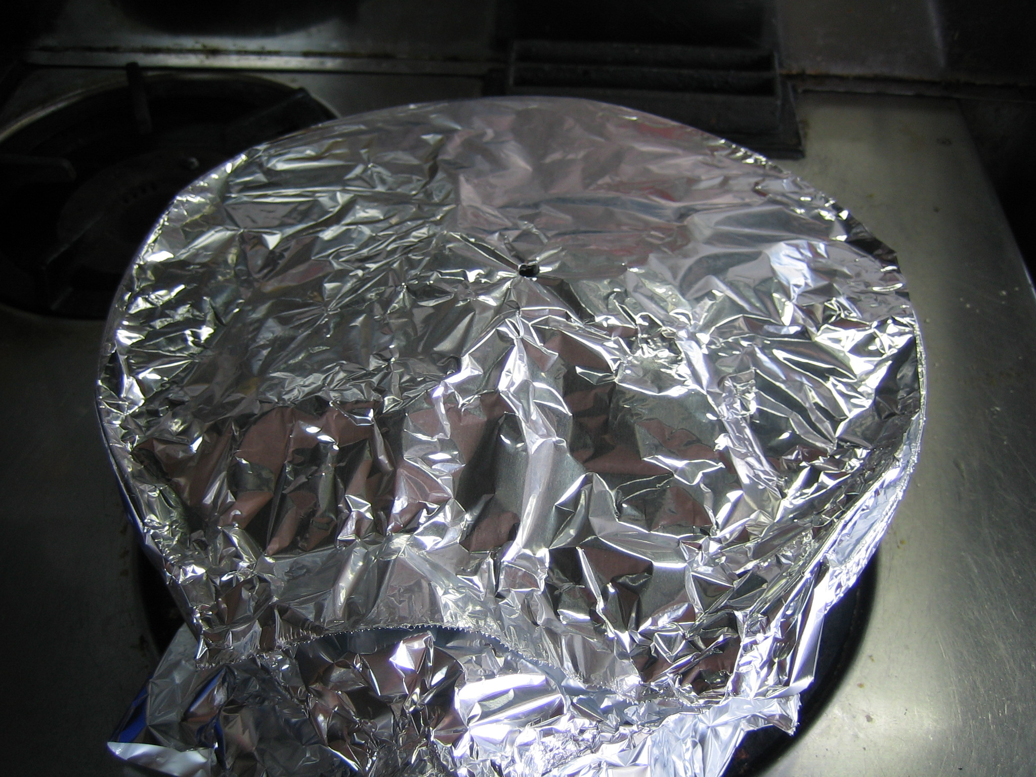 アルミホイルで蓋をして、真ん中に穴を開けます