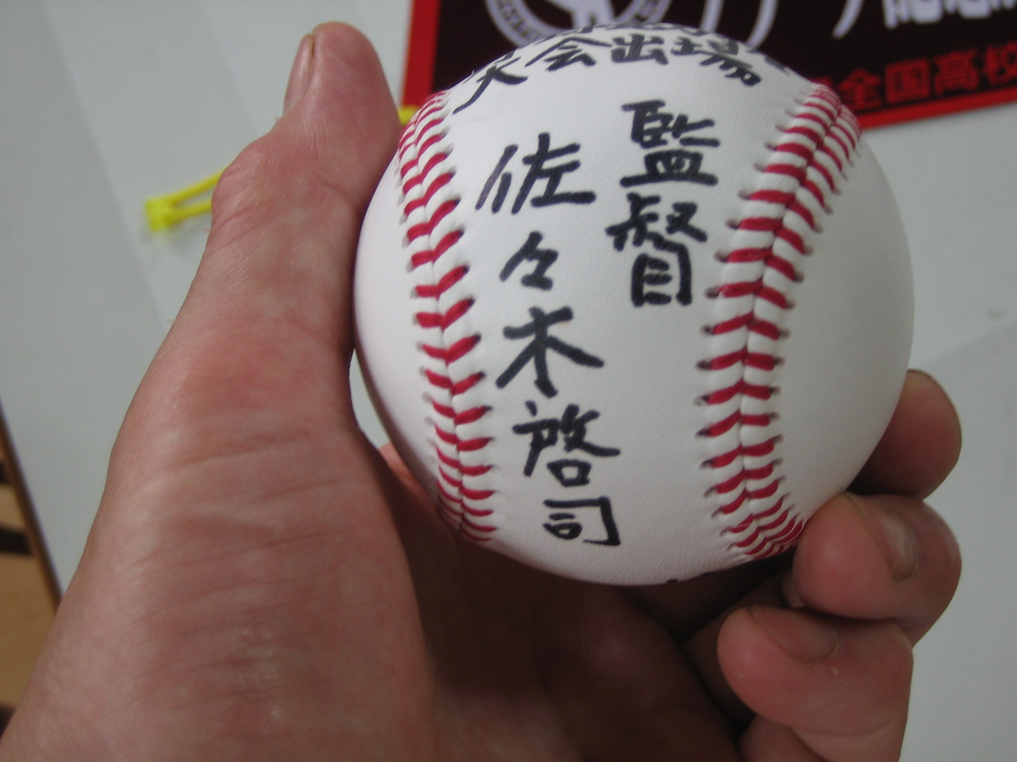 後から、そのボールとサインペンを持って来て、監督のサインを貰って欲しいと・・