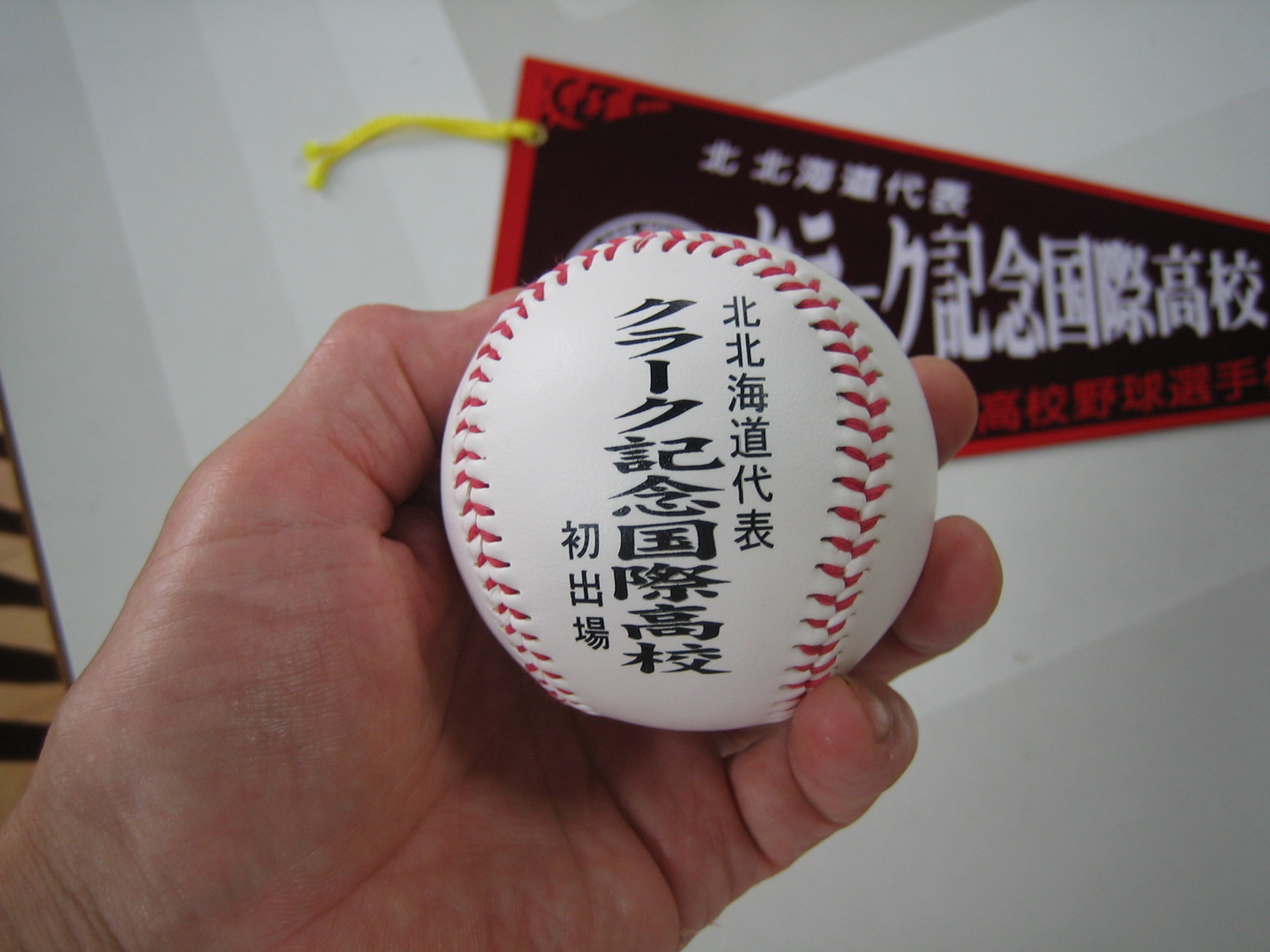 近所の野球少年が、監督からボールを貰ったそうで