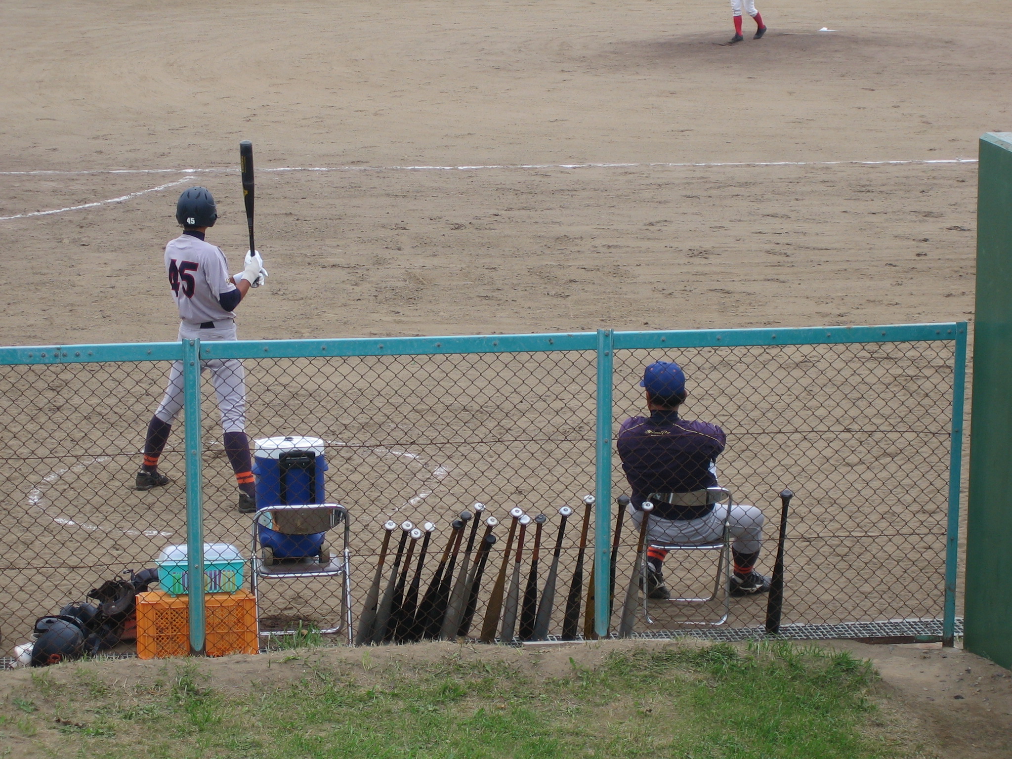 ベンチに入らず、外のパイプ椅子に陣取り・・