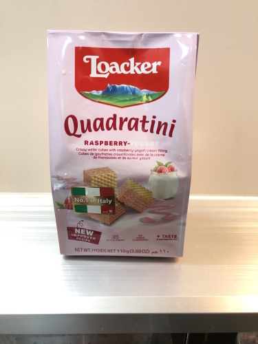 クワドラティーニ ラズベリーヨーグルト今日はこれで最初は食べなれないので苦手かなと思ったけどラズベリーヨーグルトの風味が意外とあとをひくか感じでレモンよりも食べきるのが早かったしこれはこれでなかなかおいしい★★★★☆星4つ!