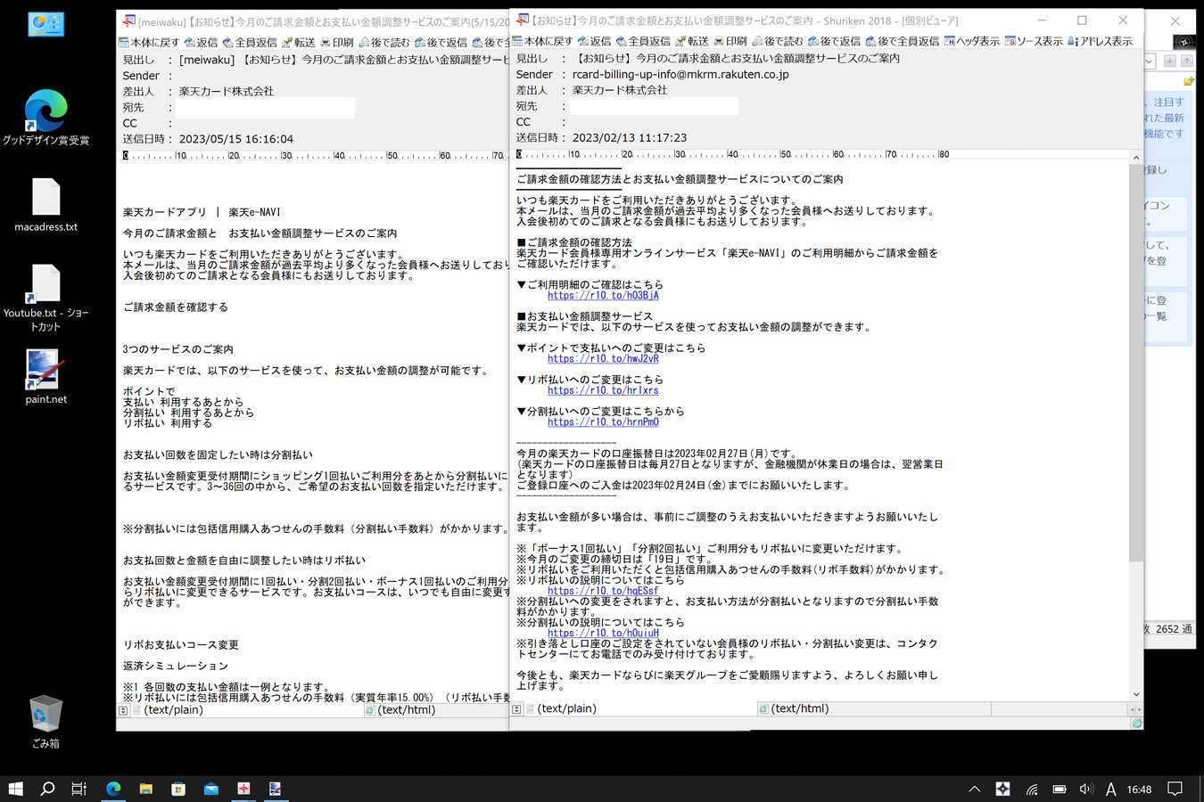 それに似せたフィッシングメールが届く