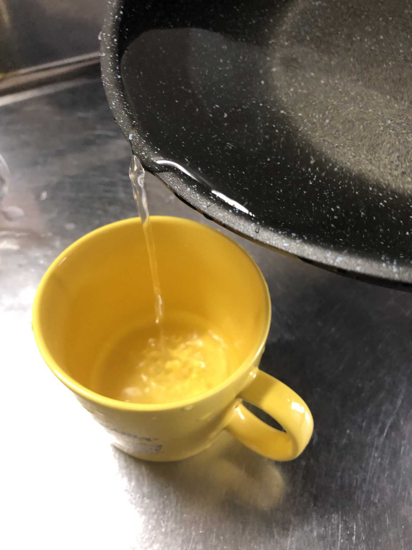 フライパンでコップに注ぐときにもこぼれないね