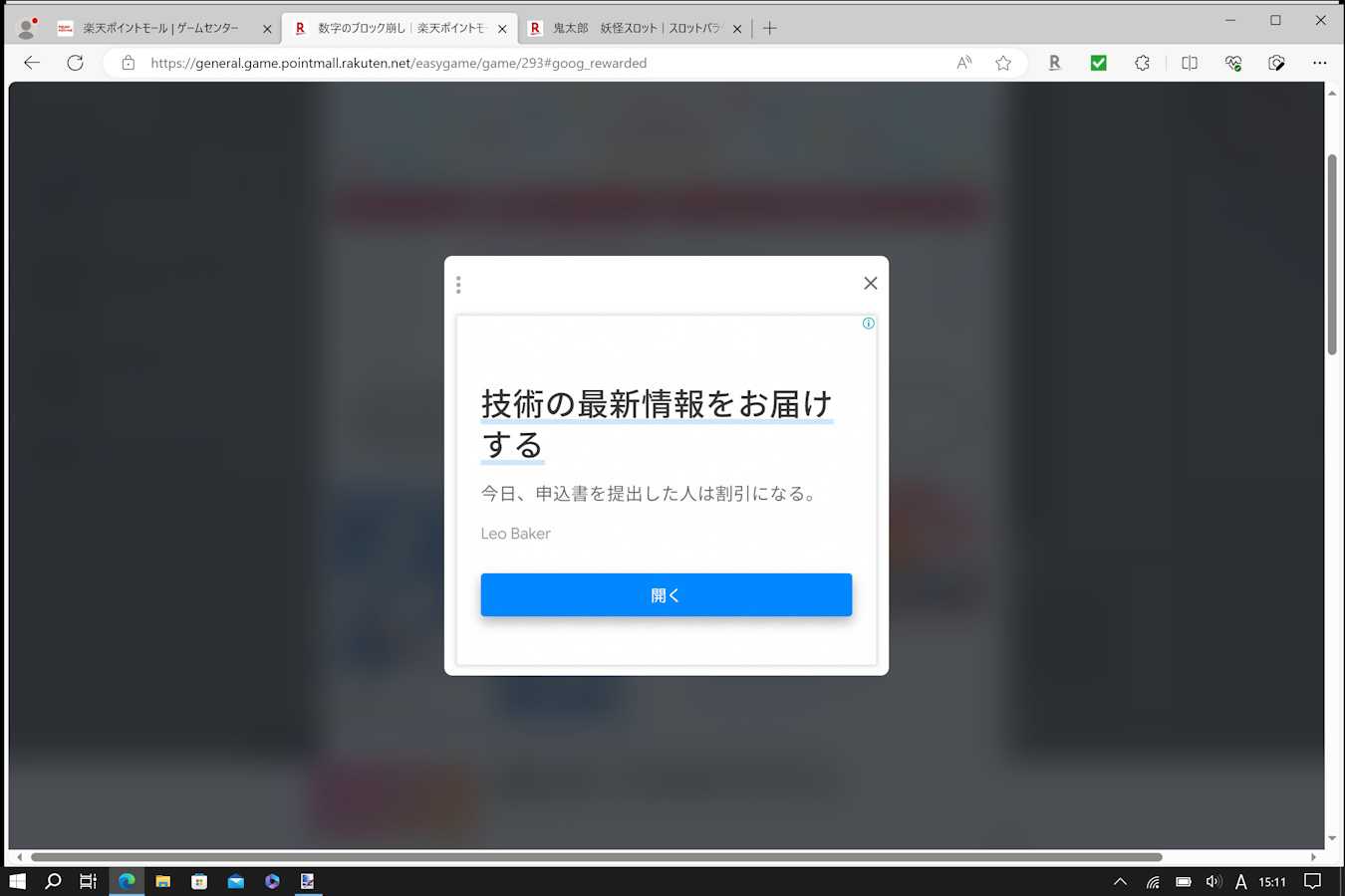 ※「ポイントを獲得する」ボタンを押すと広告が表示されます。