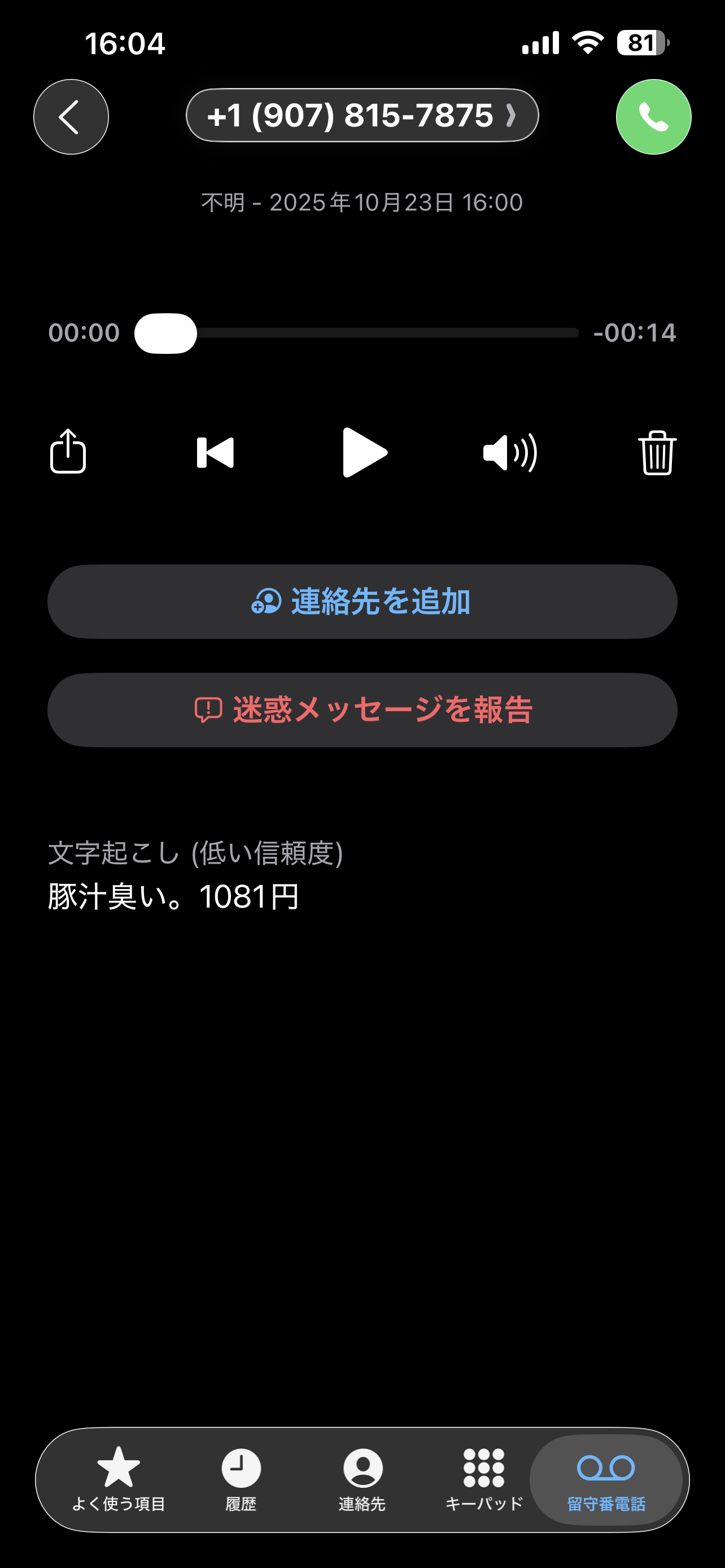 留守録の文字起こしがイミフで