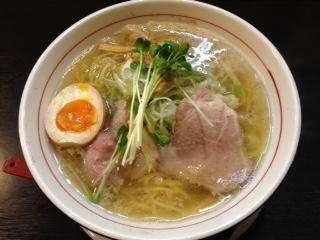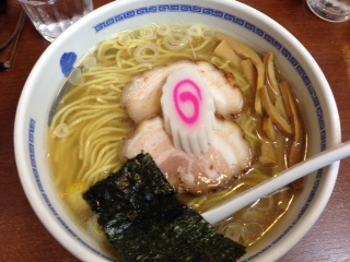 大阪出張で、ラーメンを厳選した。ただし新大阪市雄編に限る。昼食を抜いて夕食に備えたのが、こちら。塩がデフォらしい。ありがたいが前のお客さんが塩の大盛りを頼んでいたので、つられてつい、塩の大盛りを頼んでしまった。すっきり透明スープが縮れ麺に絡んで、柔らかな風味。優しい味の優しい喉ごしで、するするお腹に入る。大盛りの半分過ぎまでいただいて、ちょっと味を変えてみようかなとテーブルを見れば、柚胡椒がお待ちかね。れんげに麺を休ませてぱらぱら柚胡椒を振り、香りとともにピリ辛をいただく。ちょっと優しすぎるかな? という味にパンチが加わった。これは呑んだあとの〆にも良さそう。ボリュームのわりにするっと入ってしまった。すっきりしてるからって、食べすぎました。