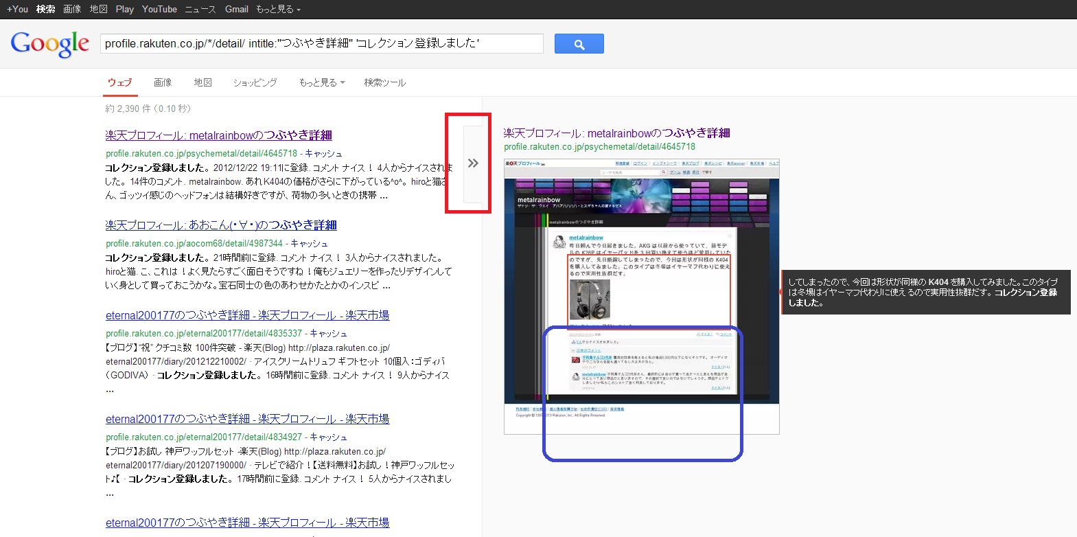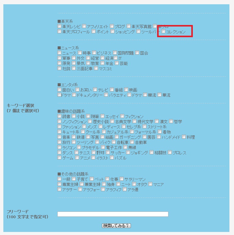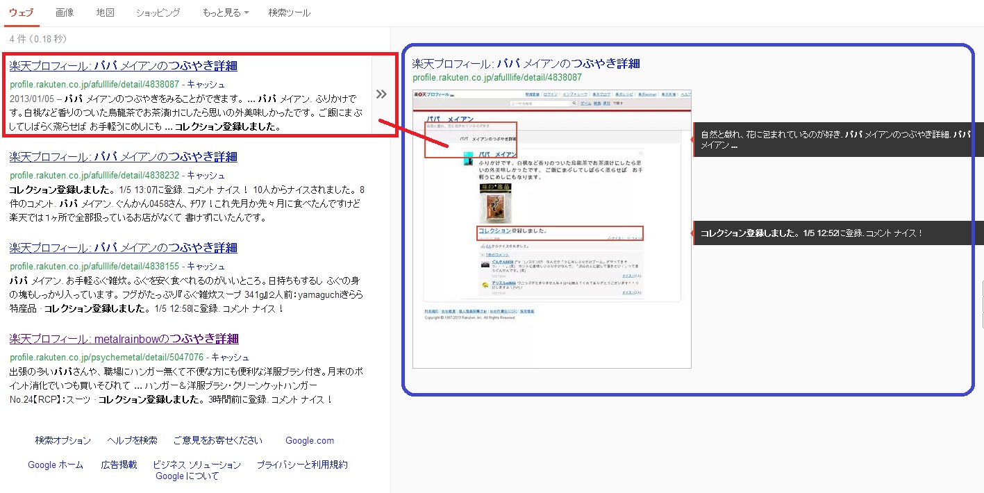 楽天プロフィールつぶやき検索機能がコレクション対応になったことを昨日の記事で書きましたが、これから数回にわたり、実際の使い方とその効果について紹介していくことにします。