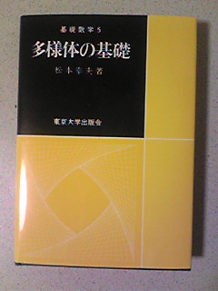 とうとう「多様体の基礎」を買ってしまったw明日、テストなのに・・・。でも、この本の内容をマスターすれば、ついに距離が無い空間でも微分ができるようになるわけだ、多分。多様体強すぎです。