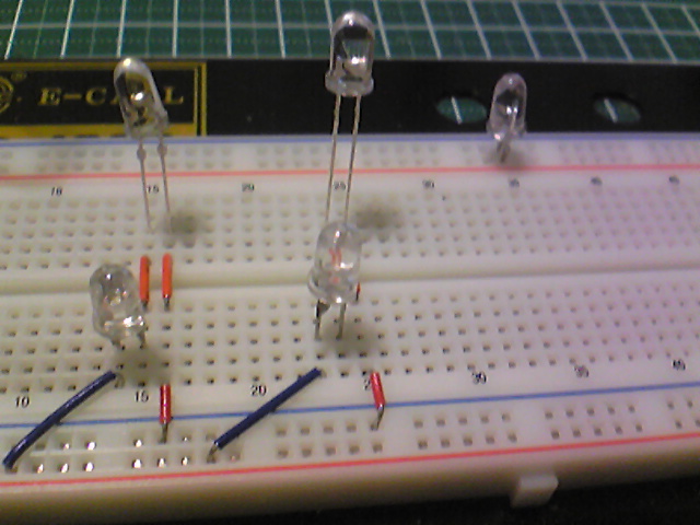 今日は帰ってから暇だったので、家にあるLEDの輝度を比較してみた。左上が日亜製(白)、左下が既製品チアライト青、真ん中の2つが25000mcdの緑、右上が既製品チアライト赤である。まずは室内の電気をつけた状態で点灯。流石は高輝度LEDと言ったところか。かなり明るい。でも赤は定格電圧をオーバーしてたせいか、あまり明るくない。続いて、室内の電気を消した状態で点灯。もう一つ別のアングルから。アングルによって見え方も変わるけど、やはり指向性が高い砲弾型なので、上から撮った写真はとても明るく写る。ただ、実際ペンライトに使用する際は、上から見るのではなく、LEDを側面から見ることになるので、拡散キャップをつける等して、うまく光を拡散させなければならない。最近は角型とかFLUX LEDにも興味があるので、安く売っていたら是非試してみたいところだ。話は変わるが、22日 S、23日 1・2回目 一般枠で応募した。23日は友人にペア枠送ってもらったけど、どうやらはずれたっぽい;;ペア枠一回でいいから当たってみたいなぁ、と思った。ちなみに明日は研究生公演の一般枠応募が始まるので、そちらも送る予定。来週末29日はきっと安奈生誕で混むだろうから、今週末と来週の水曜が狙い目かな!?6月6日には水フェスタ、6月13日にはK2一周年があるので、待ち遠しいところではあるのだが、イベントありすぎて結構大変でもある。うん、忙しい。