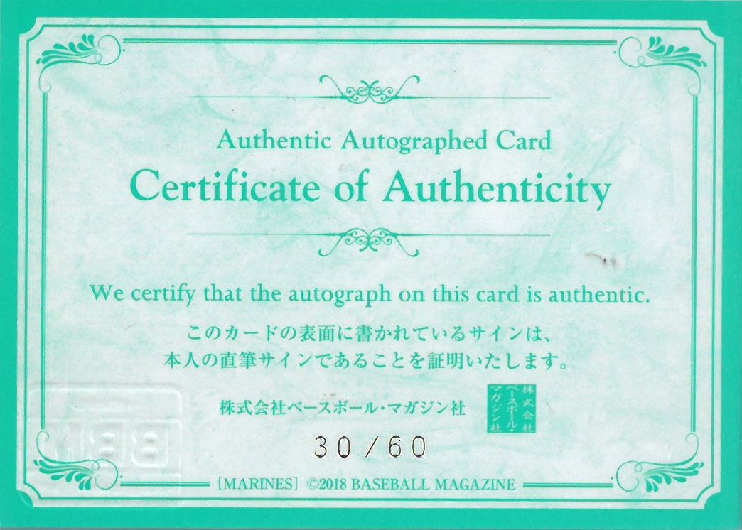 16BBM/千葉ロッテ 直筆サイン 大嶺 祐太(/60) ​【提供付加】​