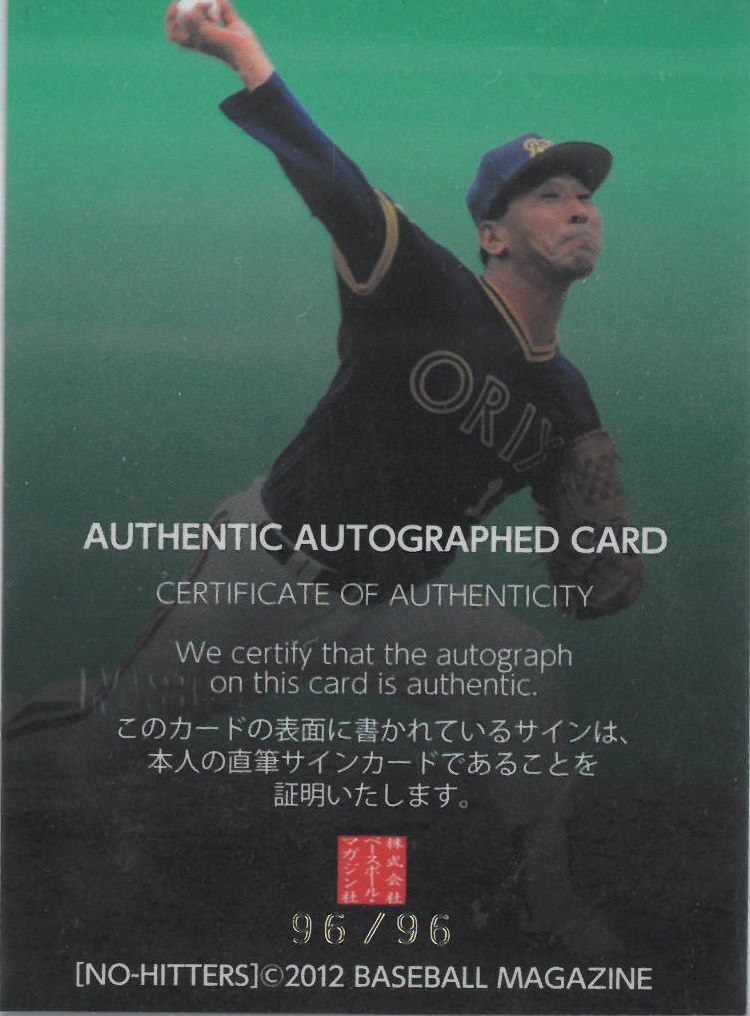 ​12BBM/No-Hitters 直筆サイン 佐藤 義則( 96 /96 Last#)[直書き] ​【提供可】​