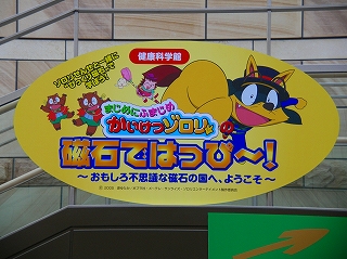 リベンジです!(^-^)9日に行って来ました。場所は、愛知県の大府市と東浦町にまたがる「あいち健康の森」です。 内容は、予想より小さな感じでしたが、結構面白いものでした。今月22日まで開催しているそうです。賑わい方は、意外や意外・・・子供だらけ(笑)。でも、興味がすぐにうせるのかどんどん移動してゆきました。展示されているものの中で、写真撮ったものが、これです。まずは、会場のお兄さんから説明を聞いているかみさんと子供です。これは、磁石の下の銅の円盤を回すと磁石が振れるって実験です。これは、電磁石の実験・・・基本的に科学館なので、その展示もちょっと撮ってみました(説明が大変なのでほとんど撮ってないんですけどね)wwエントランスの表示ですこちらは、筋肉について教えてくれるロボット博士脳に関しての映像展示室です結果的に、科学館のほうは、子供たちも素通りに近い動きでした(笑)。結論付けると、学校のときに習った「フレミングの左手の法則」を思い出すことになりますね(笑)。身の回りに磁石はたくさん使われているんでしょうけど、こうやって金属の不思議な動きを、たまに目の当たりにと面白いものですね。