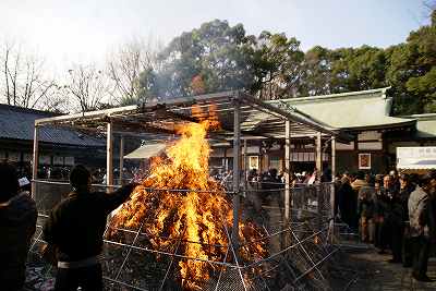 今日は、私の住んでる集落の鎮守様で、左儀長でした。簡単に言う言葉だと、「どんど焼き」ですね。しめ縄やお守りを神社のこの火で焼くんです。そして、その火・・・本当は残り火・・・でお餅を焼いて食べるとなんかいいらしいですね。さすがに、我が家の鏡餅は、パックのお餅だったので持っていかなかったです^^;画像の右側で網にのっけて焼いてますよね(^▽^笑)とにかく、今日は寒い一日でしたが、この火の前にいたときは暖かくって・・・帰り道が悔しいかな、寒く感じました(^▽^笑)だから、帰り道・・・途中で自販機で缶コーヒーのホットを買ってカイロのように手をあっためてました。camera・・・ Nikon COOLPIX E4800date・・・ 2008.1.13(su)1/12 アメブロ版の記事 ・・・ 常滑さんぽ・・・招き猫通り。。。4