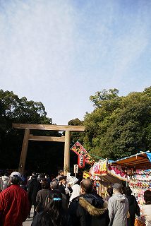 1月5日の熱田の「初えびす」には、メインの神社「熱田神宮」にも行ってます。まずは、入り口の鳥居を・・・露天もたくさん出てて、大賑わいです。木立の中を歩いていって、拝殿前に・・・お賽銭を投げて、お参りしてから撮りました(^▽^笑)この写真には、人がいないように見えますが、下のほうの白いところは賽銭箱なんで、人が写ってないんですよ。そして、やはり熱田さんの「神宮の森」は、立派な木々が多いです・・・camera・・・ SONY α100date・・・ 2008.1.5(sa)spot・・・ 名古屋・熱田神宮 ワイワイマップ1/8 アメブロ版の記事 ・・・ 常滑さんぽ・・・招き猫通り。。。3